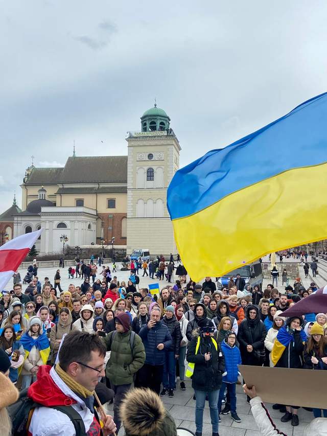 Люди пришли выразить свои соболезнования на Замковую площадь Варшавы. Акция прошла 9 апреля и о ней сообщило Посольство Украины в Польше.