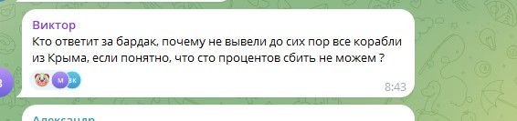 - Кто ответит за бардак, почему не вывели все корабли из Крыма, если понятно, что сто процентов сбить не можем?