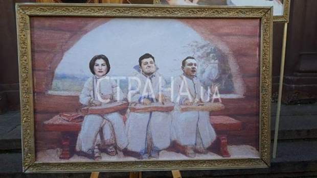 Выставка карикатур сторонников Порошенко под ГБР / Фото Андрея Луганского, Страна.ua