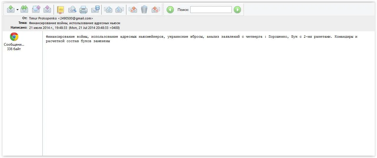 В общем хакеры выложили в общий доступ массив писем и записей Прокопенко объемом 1,3 гигабайта.