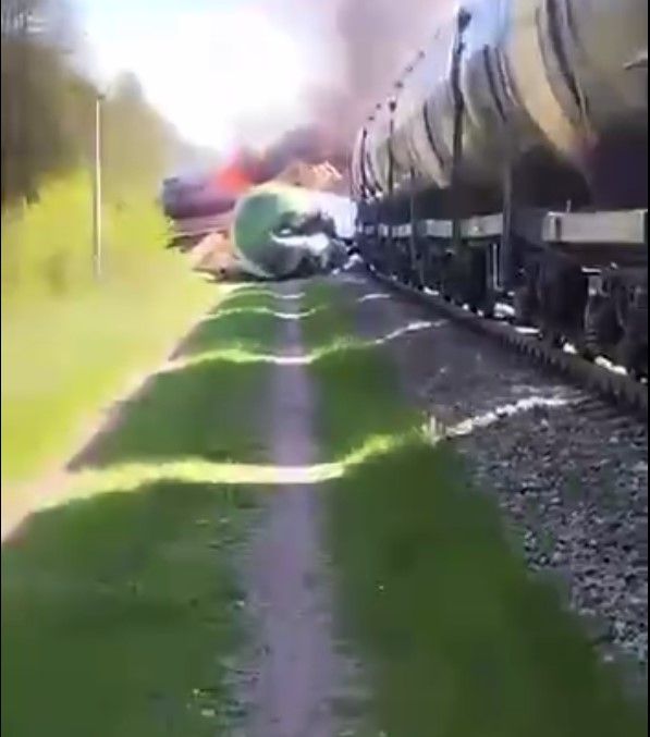 Вечером на железной дороге Брянской области произошел взрыв. Глава региона Александр Богомаз заявил, что в районе станции Снежицкая "сработало неустановленное взрывное устройство", из-за чего с рельсов сошли локомотив и "несколько грузовых вагонов". Однако очевидцы сообщали о нескольких взрывах, а местные СМИ писали, что с рельсов сошли 20 вагонов грузового состава. Пропагандисты также утверждают, что в вагонах были пропан и известь. Однако похоже на то, что из перевернувшихся вагонов произошел разлив серы и селитры.