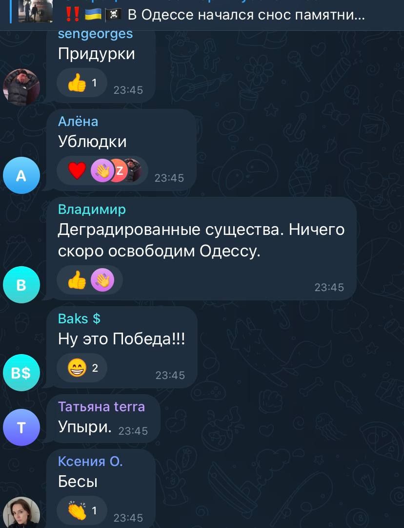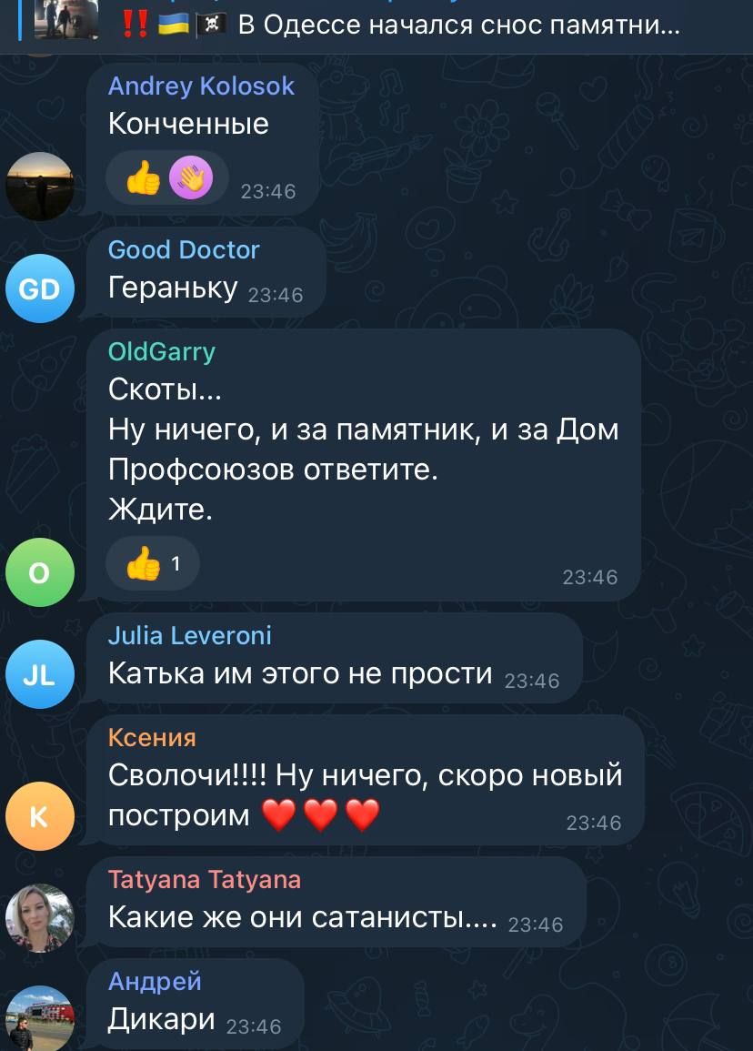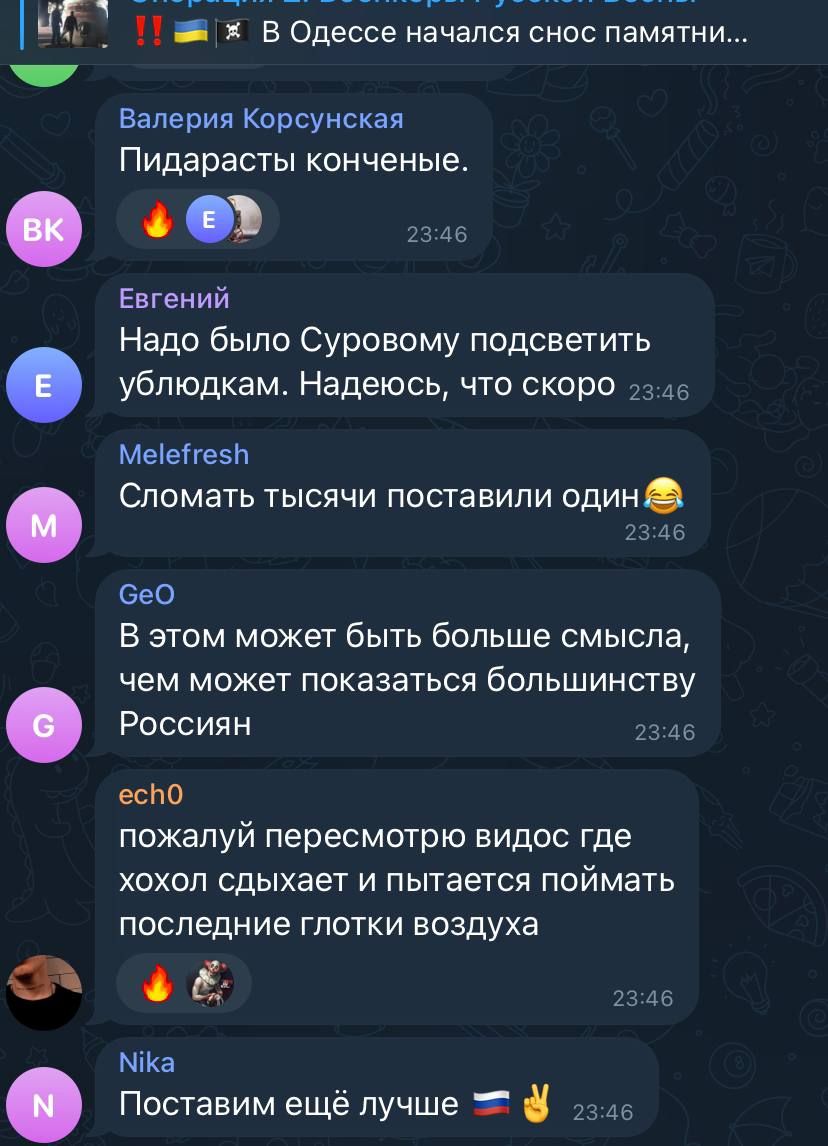 Реакция россиян на демонтаж памятника Екатерине II в Одессе / Скриншоты из соцсетей