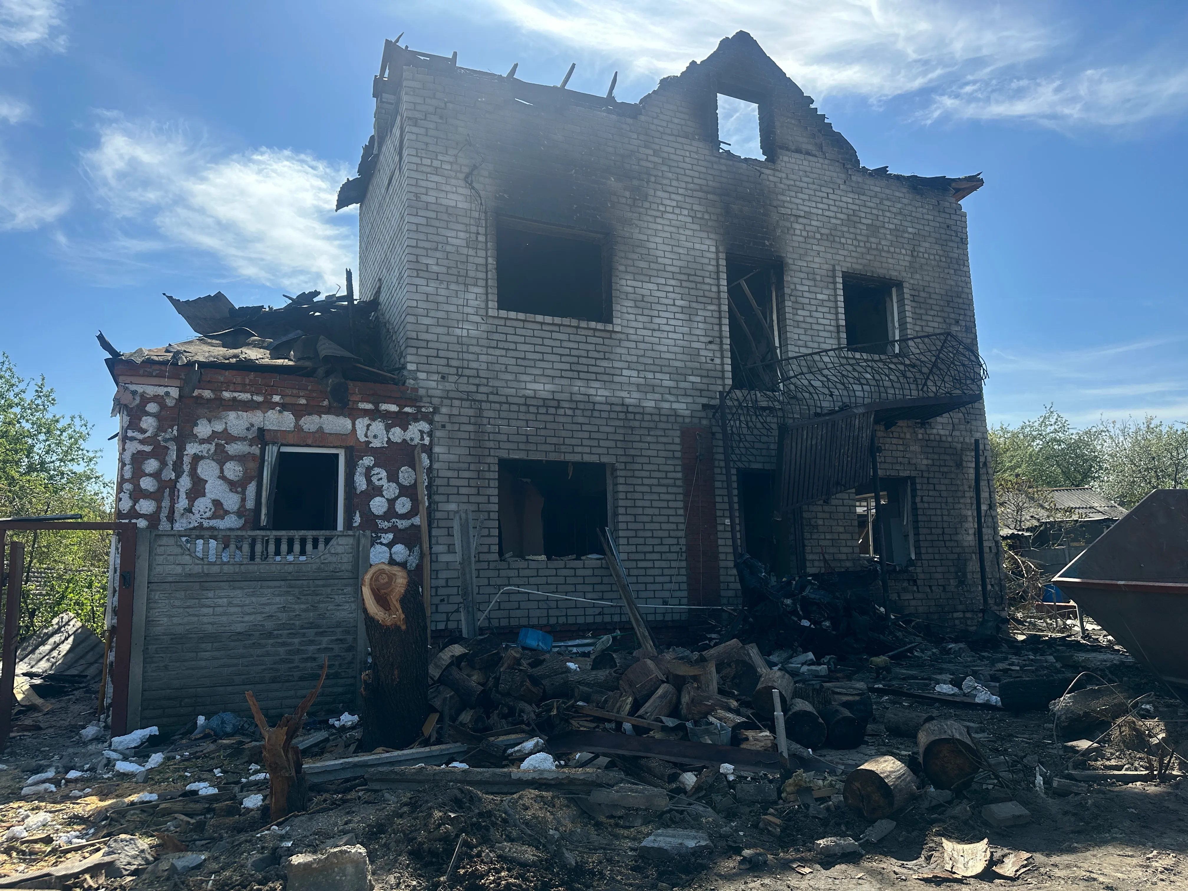 В частном секторе повреждено много домов. В частности, в одном из них после попадания беспилотника образовалась глубокая воронка. На этом месте стояла машина владельцев, которую взрывная волна разорвала на части, разбросав обломки по соседним дворам. Взрыв также повредил ворота и вызвал пожар.