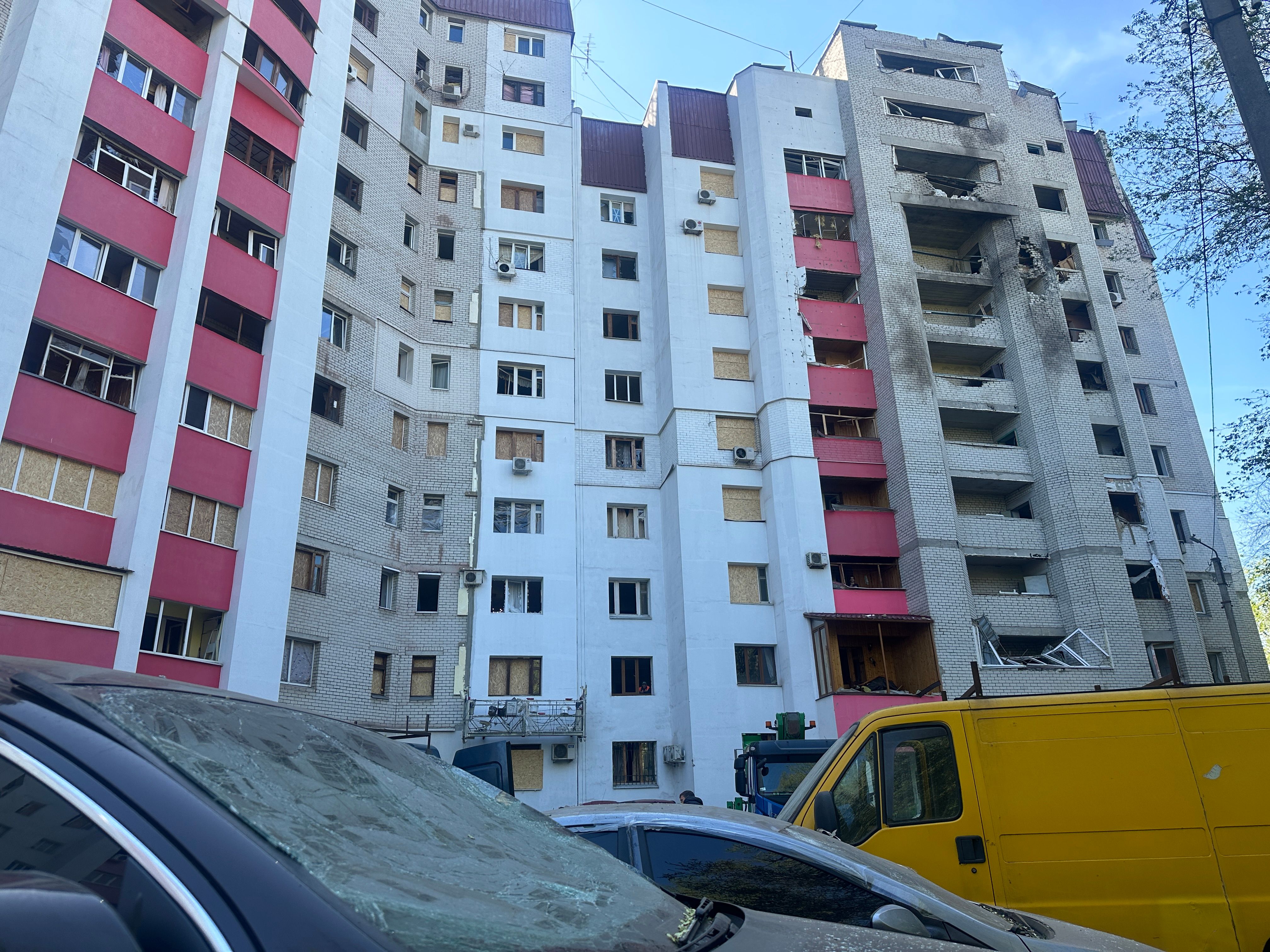 Многоэтажка Харькова, которая пострадала от российского обстрела/Фото 24 Канала