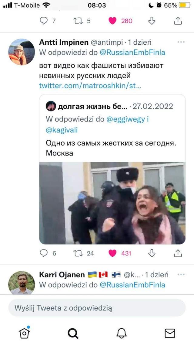 Ответ не заставил себя ждать: люди писали, что сама Россия убивает русскоязычных жителей в Мариуполе и Харькове. Пользователи отмечали: права россиян не нарушают в Финляндии, однако издеваются над людьми в России и Украине и делает это режим Путина.