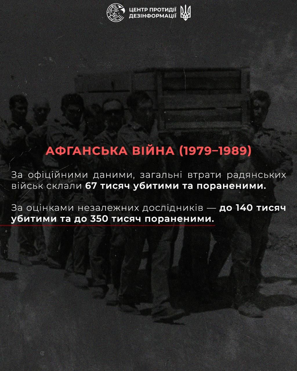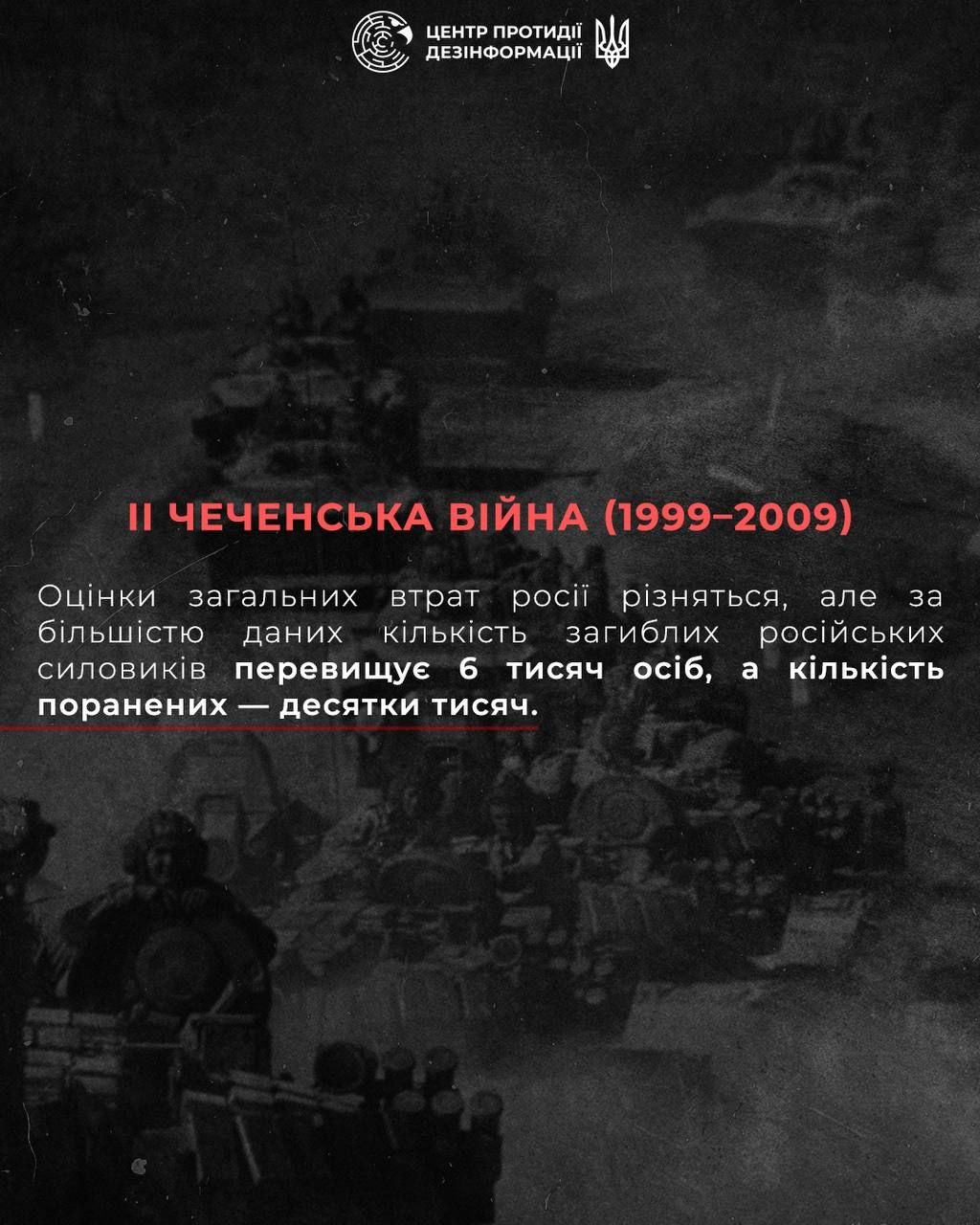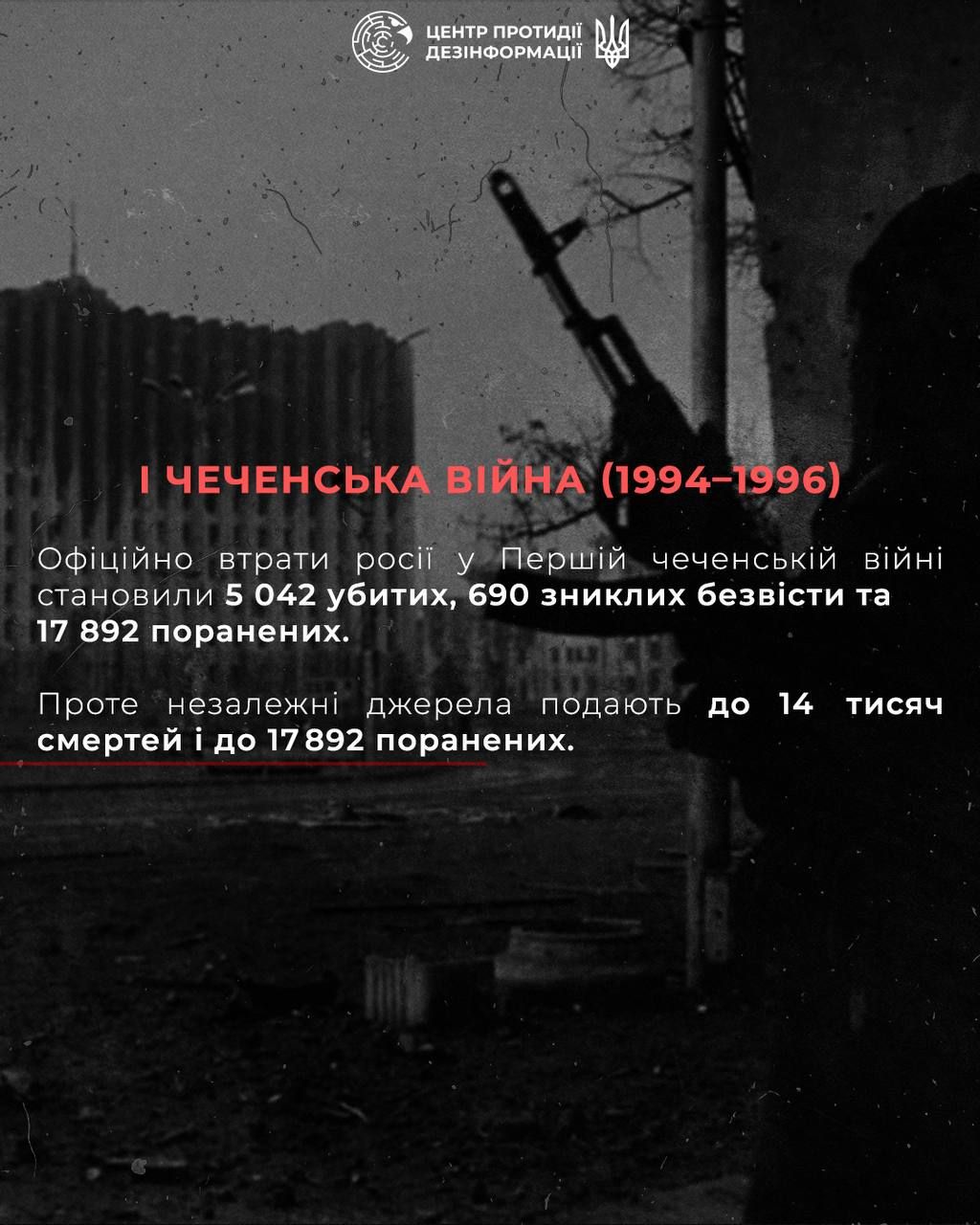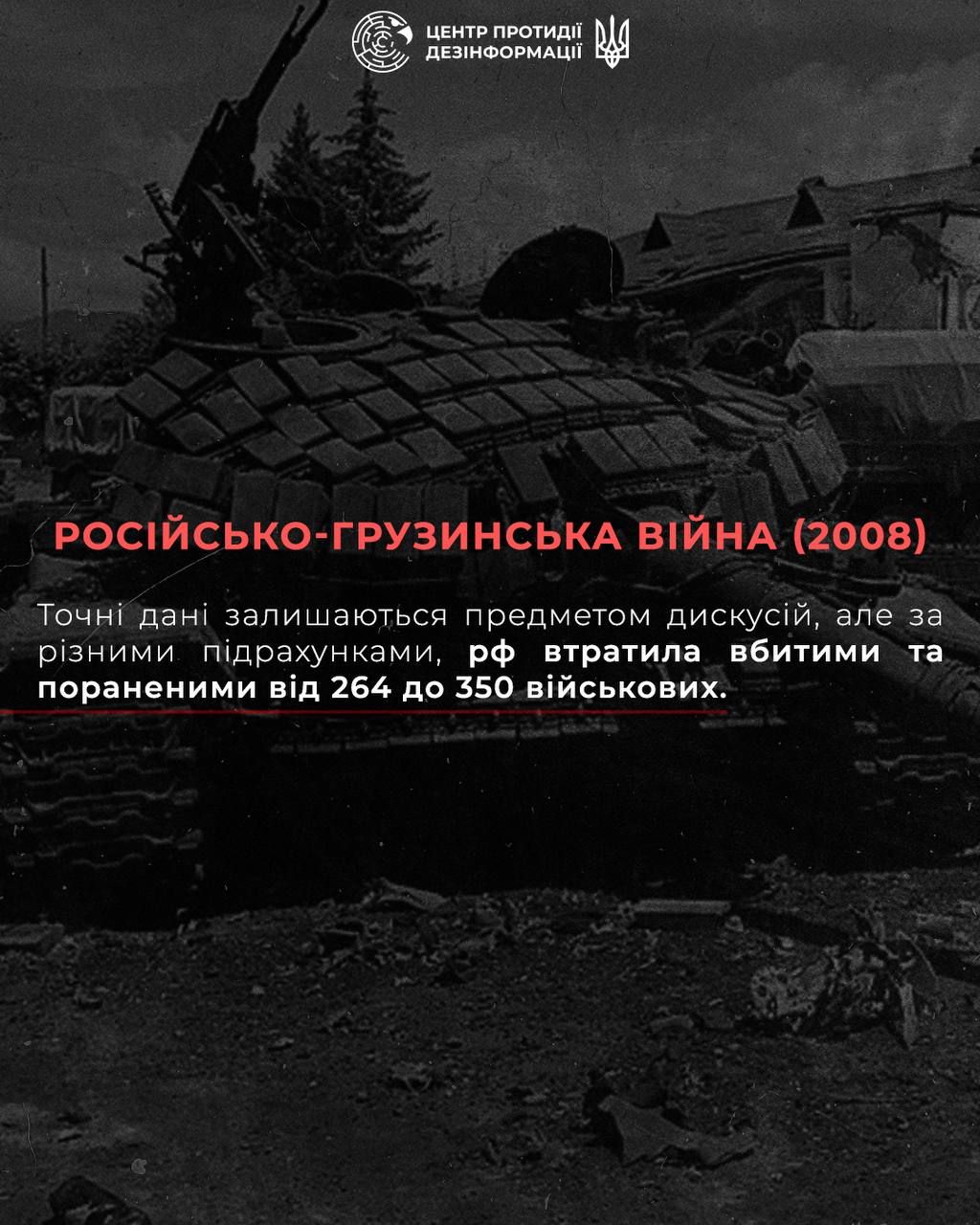 В Центре противодействия дезинформации также сравнили потери России в полномасштабной войне против Украины, а также другие цифры в различных войнах, где участвовала страна-агрессор в течение последних десятилетий.