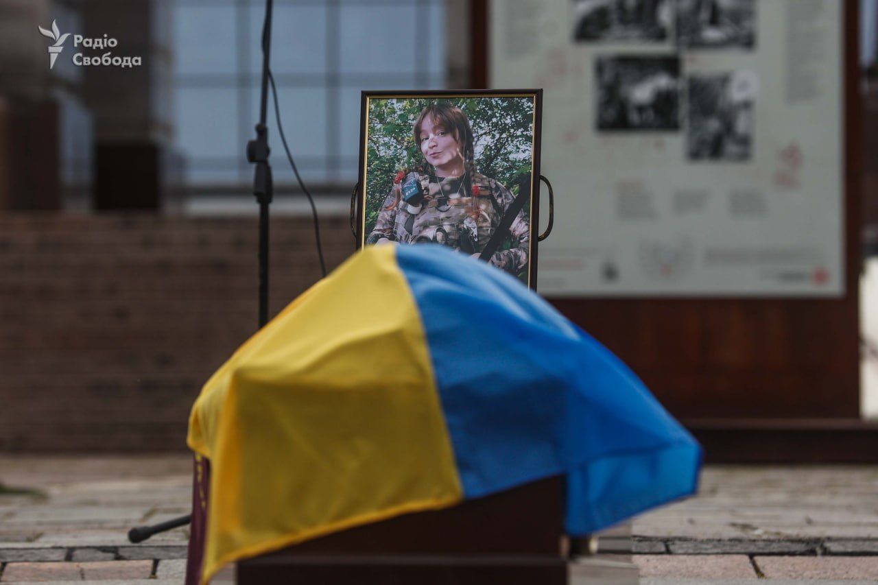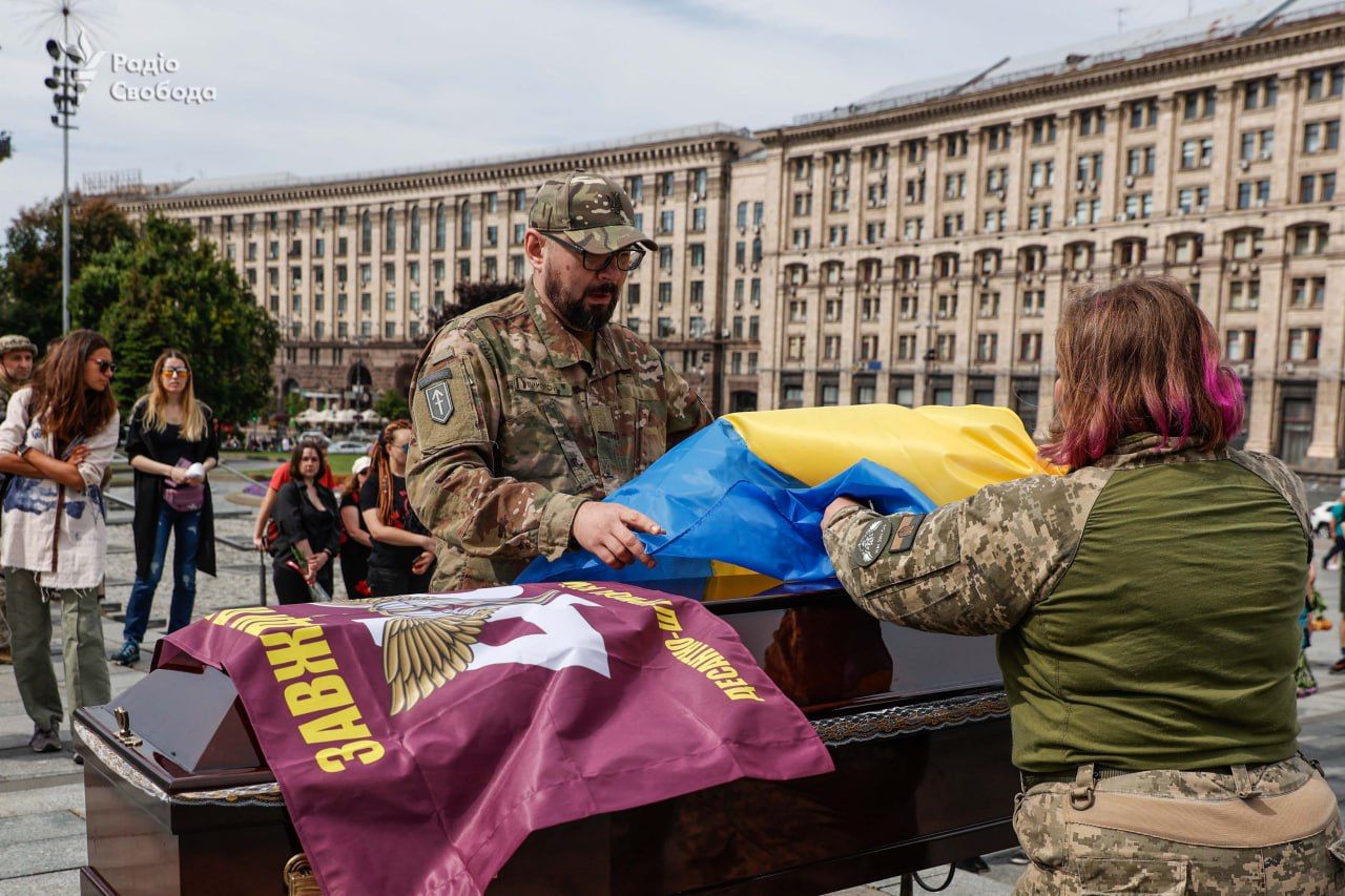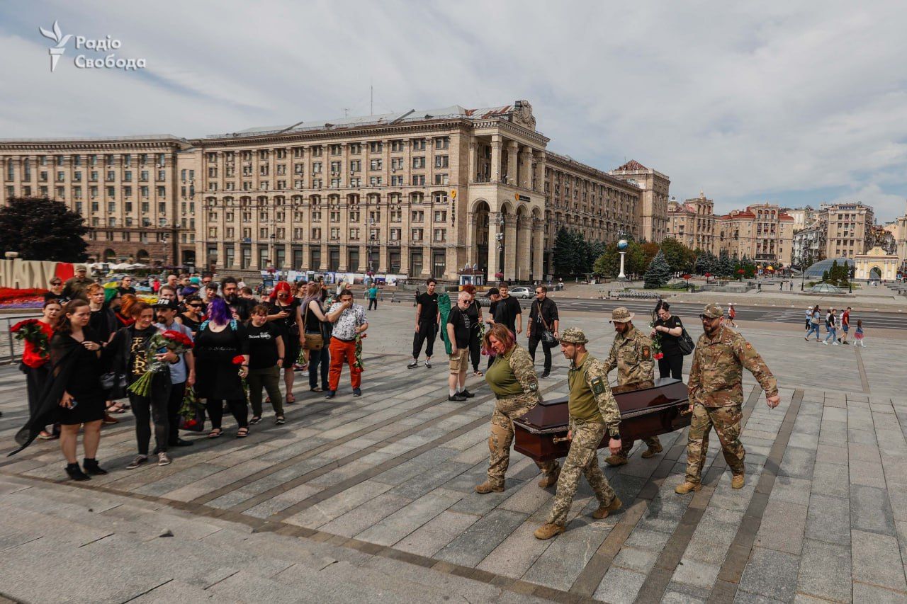 На Майдане Независимости в Киеве 12 августа простились с боевым медиком 46-й отдельной десантно-штурмовой бригады Дарьей Филипьевой с позывным "Молния", погибшей на фронте.
