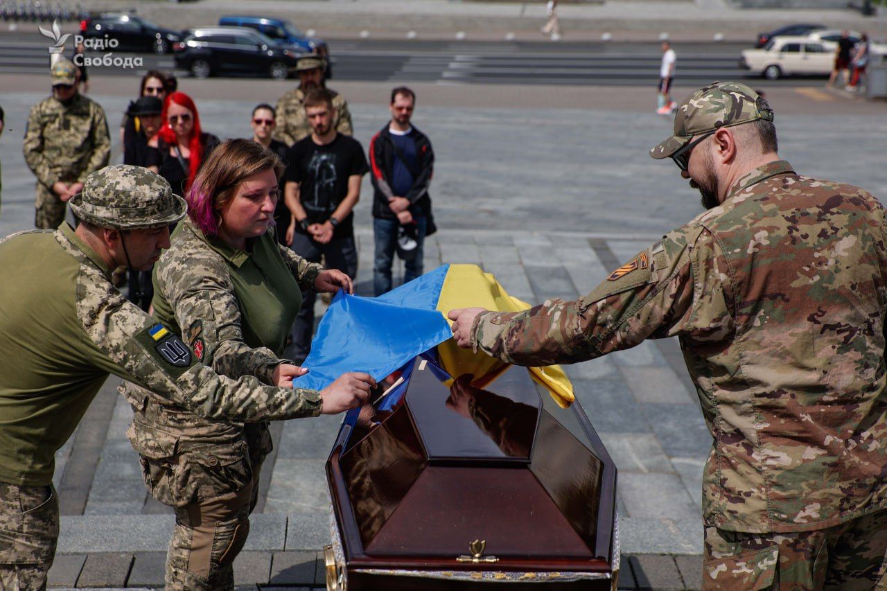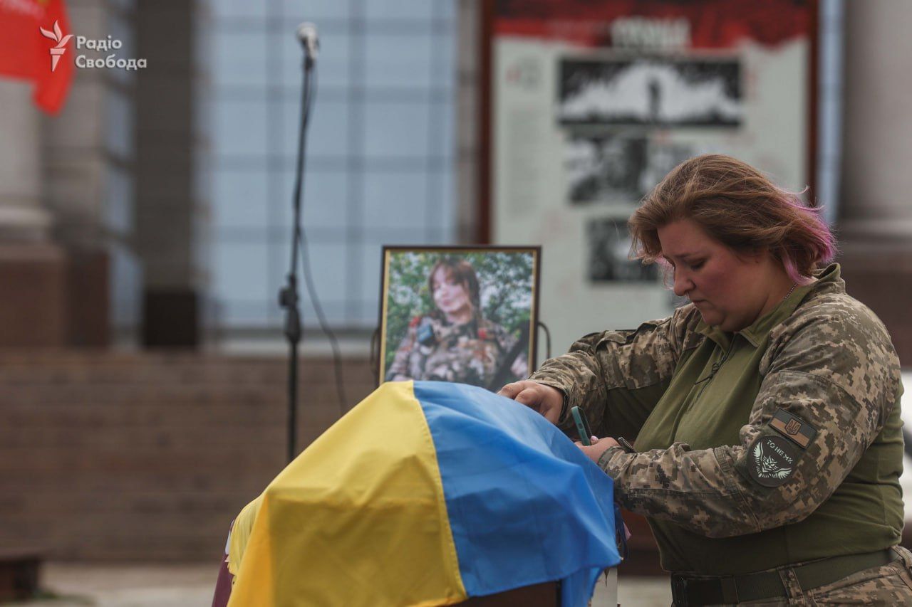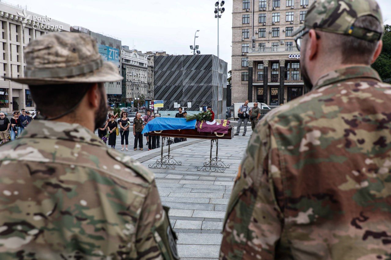 На Майдане Независимости в Киеве 12 августа простились с боевым медиком 46-й отдельной десантно-штурмовой бригады Дарьей Филипьевой с позывным "Молния", погибшей на фронте.