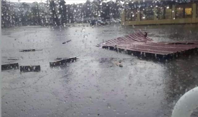 - На Площади Героев летали элементы кровли. Также ветер сорвал часть крыши с отеля.