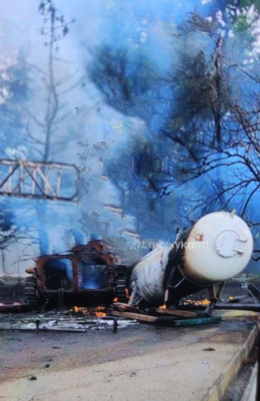 Стоит сказать, что пока неизвестно точно, какое именно транспортное средство въехало в заправку. На одном из фото видны гусеницы, поэтому местные паблики предполагают, что произошло ДТП с участием боевой машины пехоты.