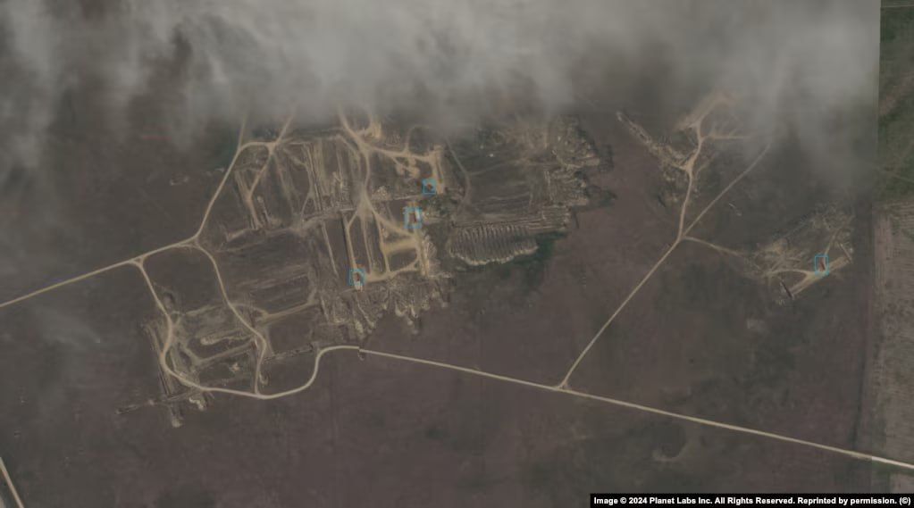 В то же время на снимке за 5 мая можно увидеть воронку, которой нет на предыдущих фотографиях. Однако ни в ВСУ, ни в оборонном ведомстве России не сообщали об атаке на позиции "Искандеров" в Крыму. Поэтому точно не известно, вызван ли пожар ударами украинским вооружением или же спровоцирован пусками самих российских ракет.