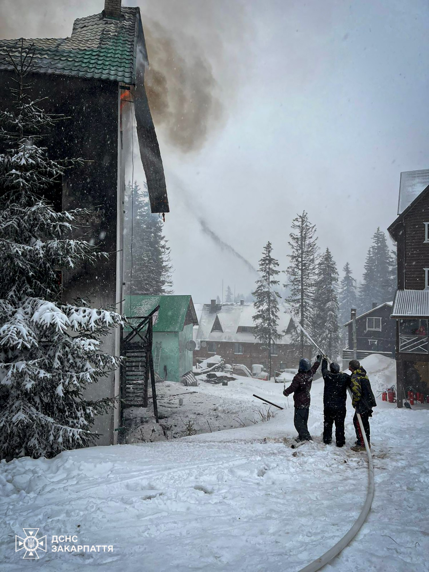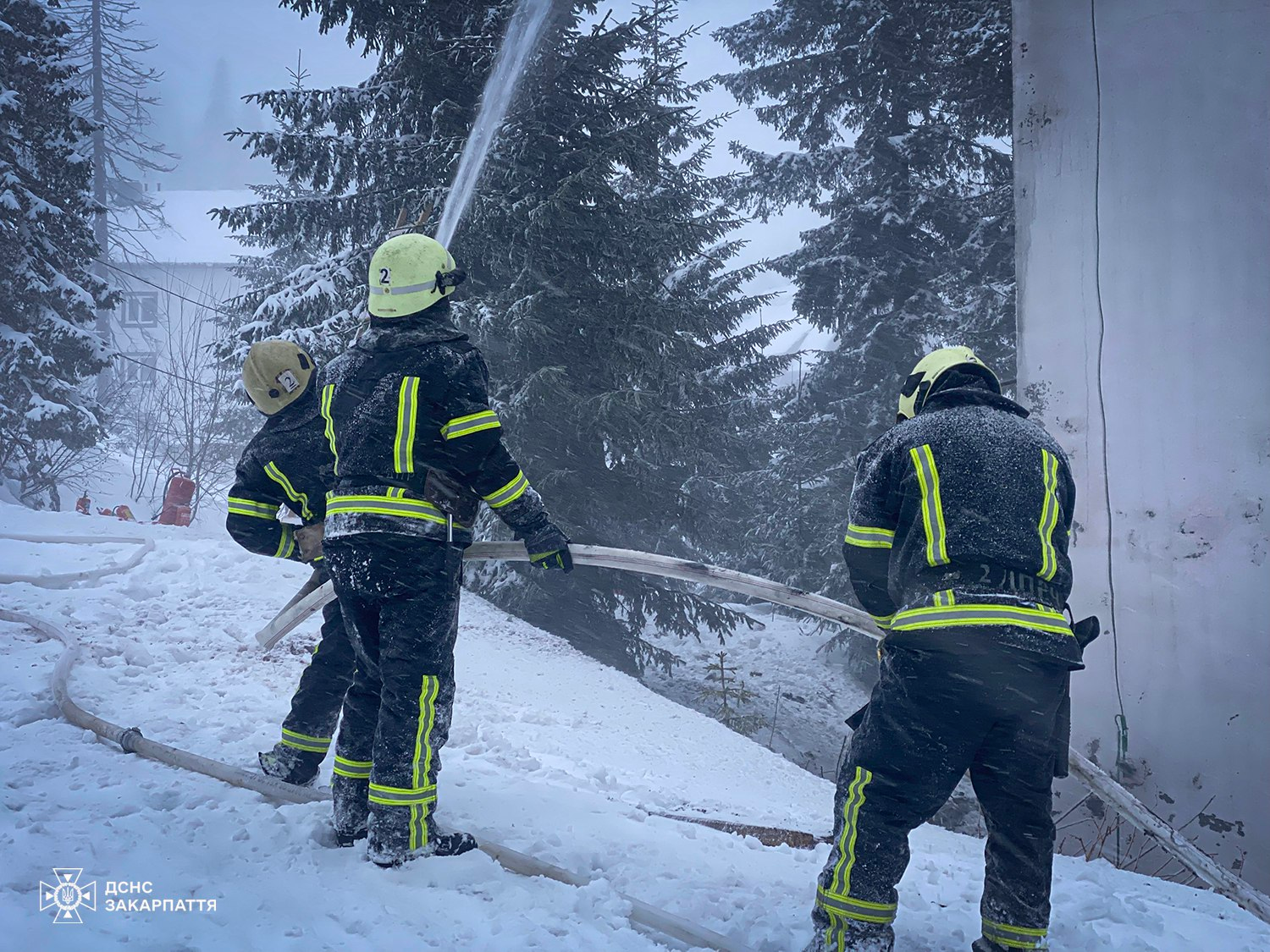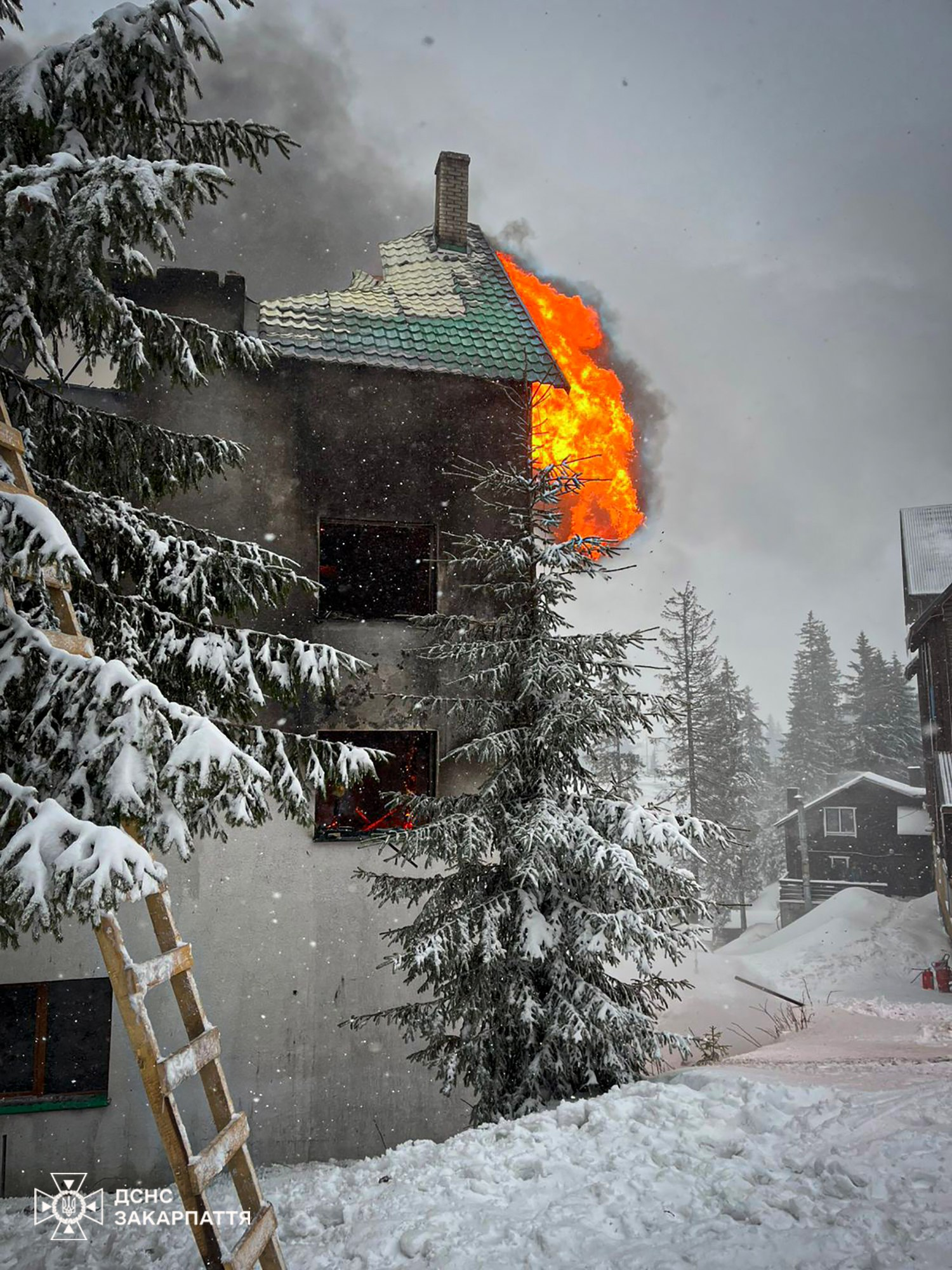 О возгорании отеля ГСЧС узнали в 12:20 11 января. Для ликвидации огня были направлены спасатели из городов Рахов и Хуст, а также из села Ясини.