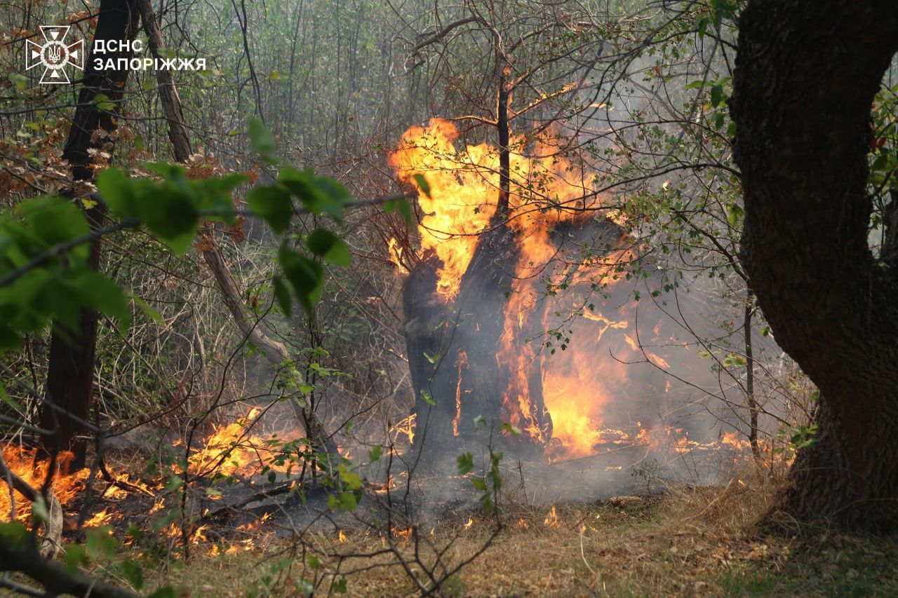 По данным ГСЧС, на Хортице на значительной площади горит лесная подстилка, сухая трава и кустарники. Ситуацию ухудшает рельеф острова, который затрудняет проезд пожарной техники, а также сильный ветер и жара.