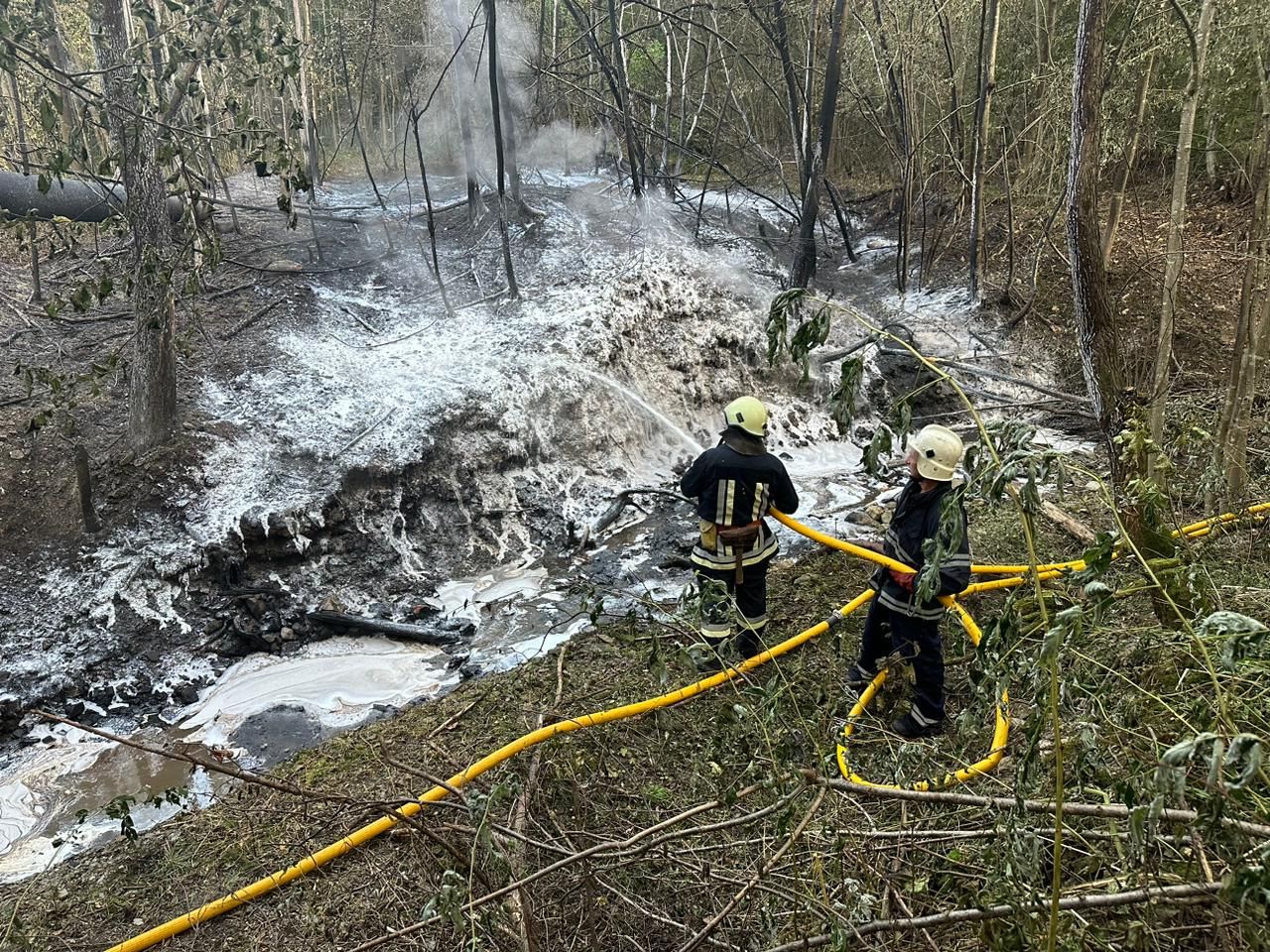 В 17:54 спасатели ликвидировали пожары разлитых нефтепродуктов на площади 100 квадратных метров и вспомогательного сооружения на площади 20 квадратных метров. Они возникли в результате порыва нефтепровода вблизи села Стримба Надворнянского района.