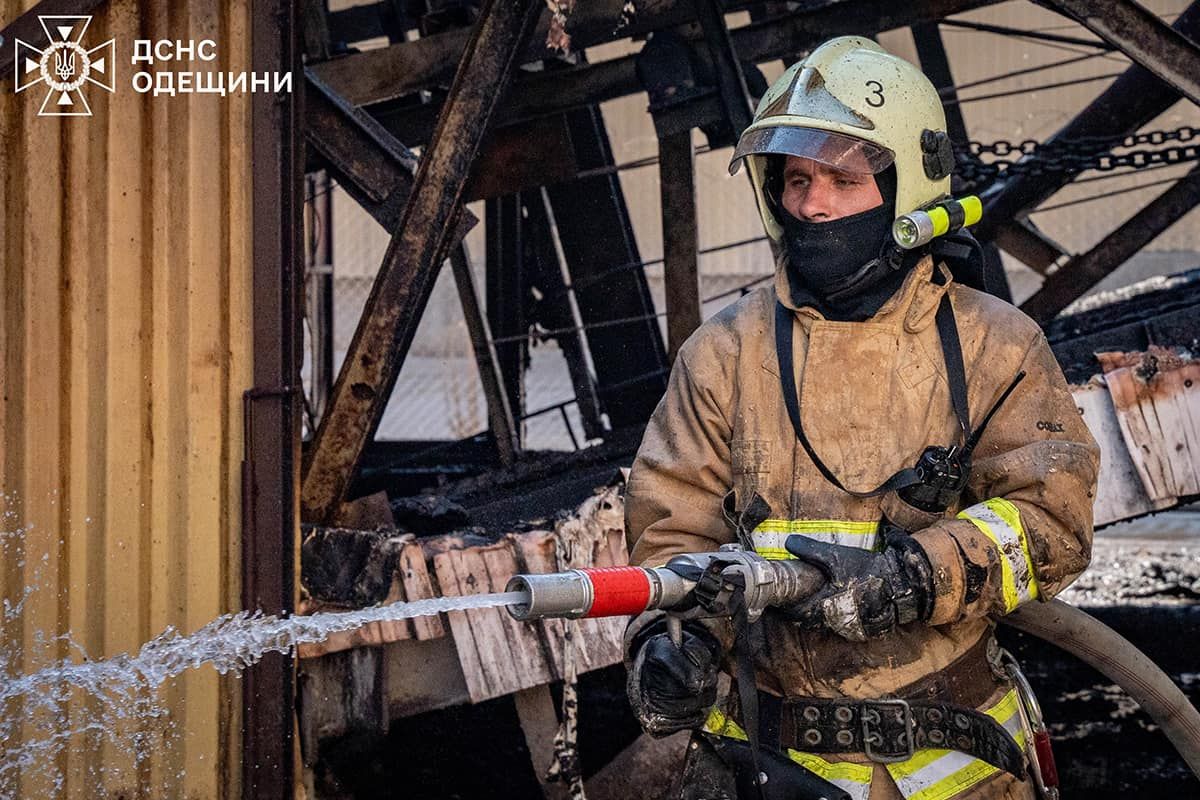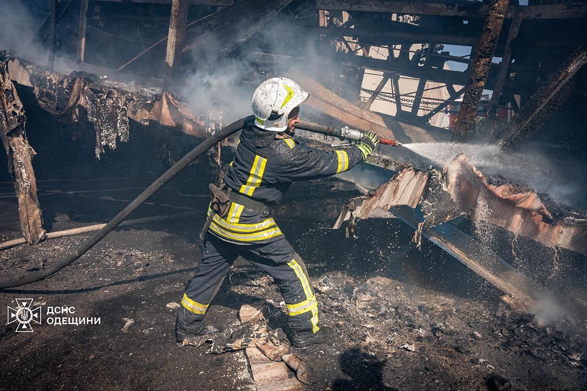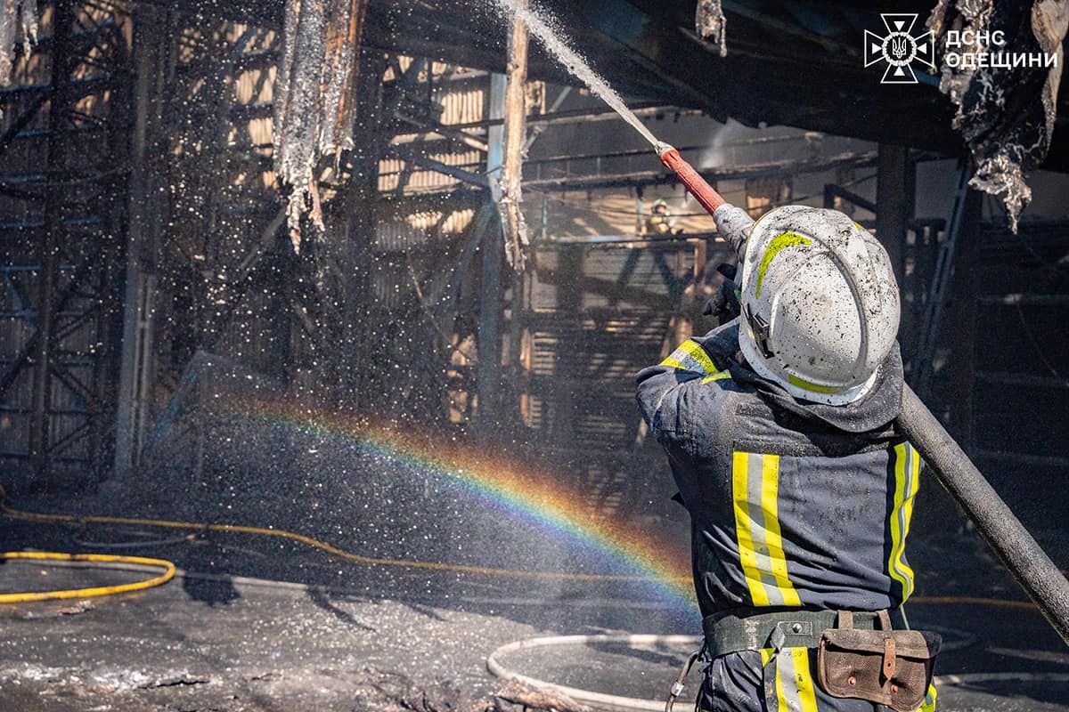 Спасатели сообщили, что склад расположен в селе Визирка в Одесской области. Тушили пожар 53 спасателя и 14 единиц техники. Также работники ГСЧС привлекли местную пожарную команду.