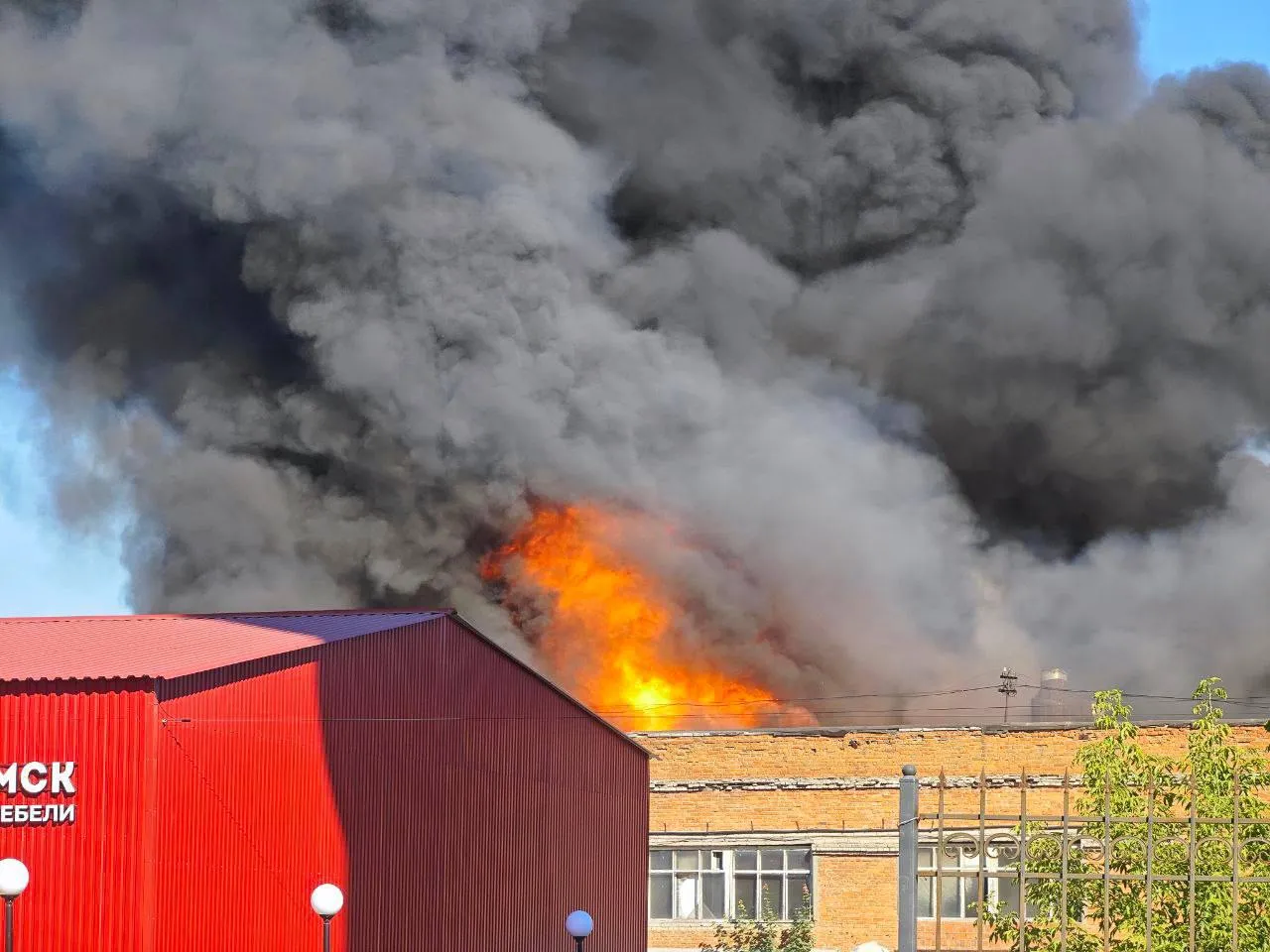 Отмечается, что внутри цеха находятся 30 газовых баллонов, которые могут взорваться. Пожарные вынесли 10 из них. Огонь продолжает стремительно распространяться.