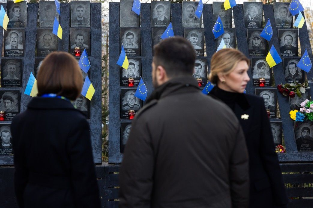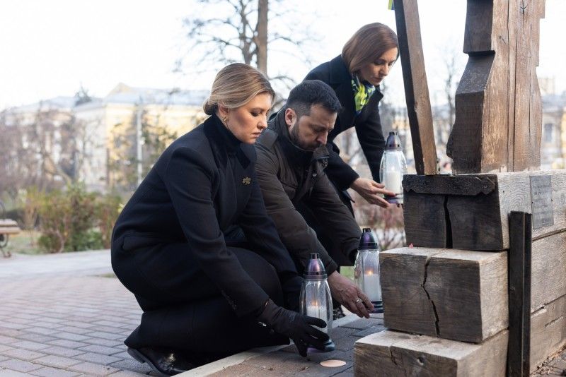 В День Достоинства и Свободы Владимир Зеленский и первая леди Елена Зеленская почтили память активистов, погибших во время Революции Достоинства. В мероприятии также приняла участие президент Молдовы Майя Санду.