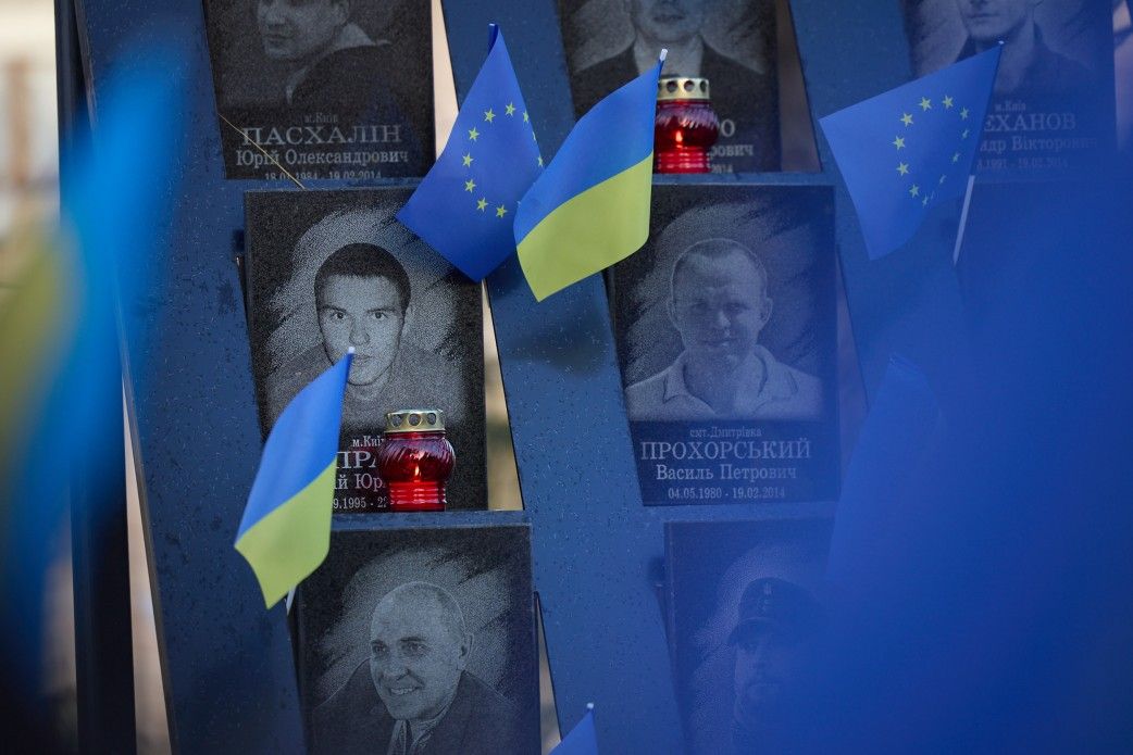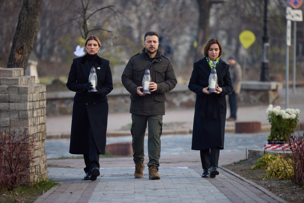 Украинский лидер с первой леди и Маей Санду установили лампадки к кресту на Аллее Героев Небесной Сотни в Киеве. Также присутствующие отдали честь памяти павших активистов возле их портретов.