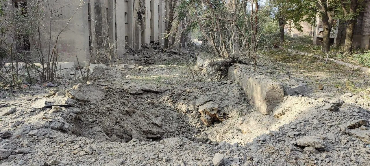 Вырва на месте удара в Кадиевке / Фото Цаплиенко