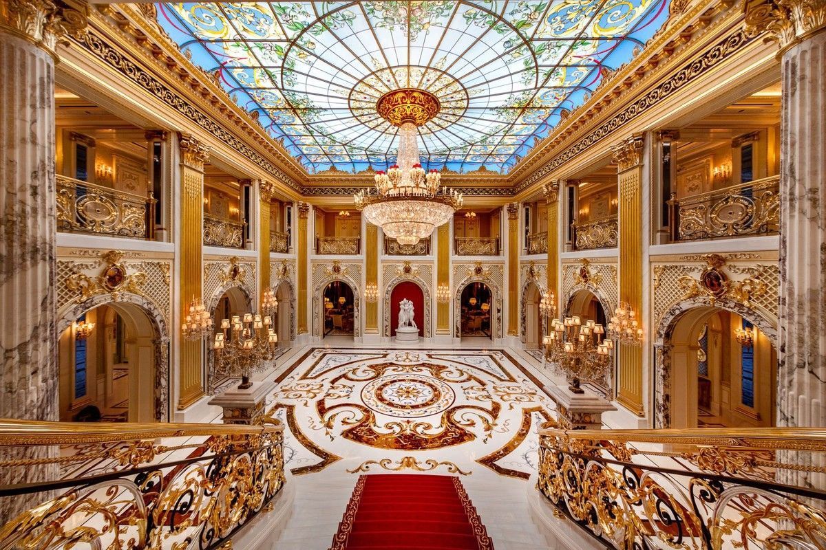 - Дом имеет площадь в 1,1 гектара. За него просят более 250 миллионов долларов, поэтому это самый дорогой дворец в Израиле. Стиль имения – цыганское барокко в золотом цвете.