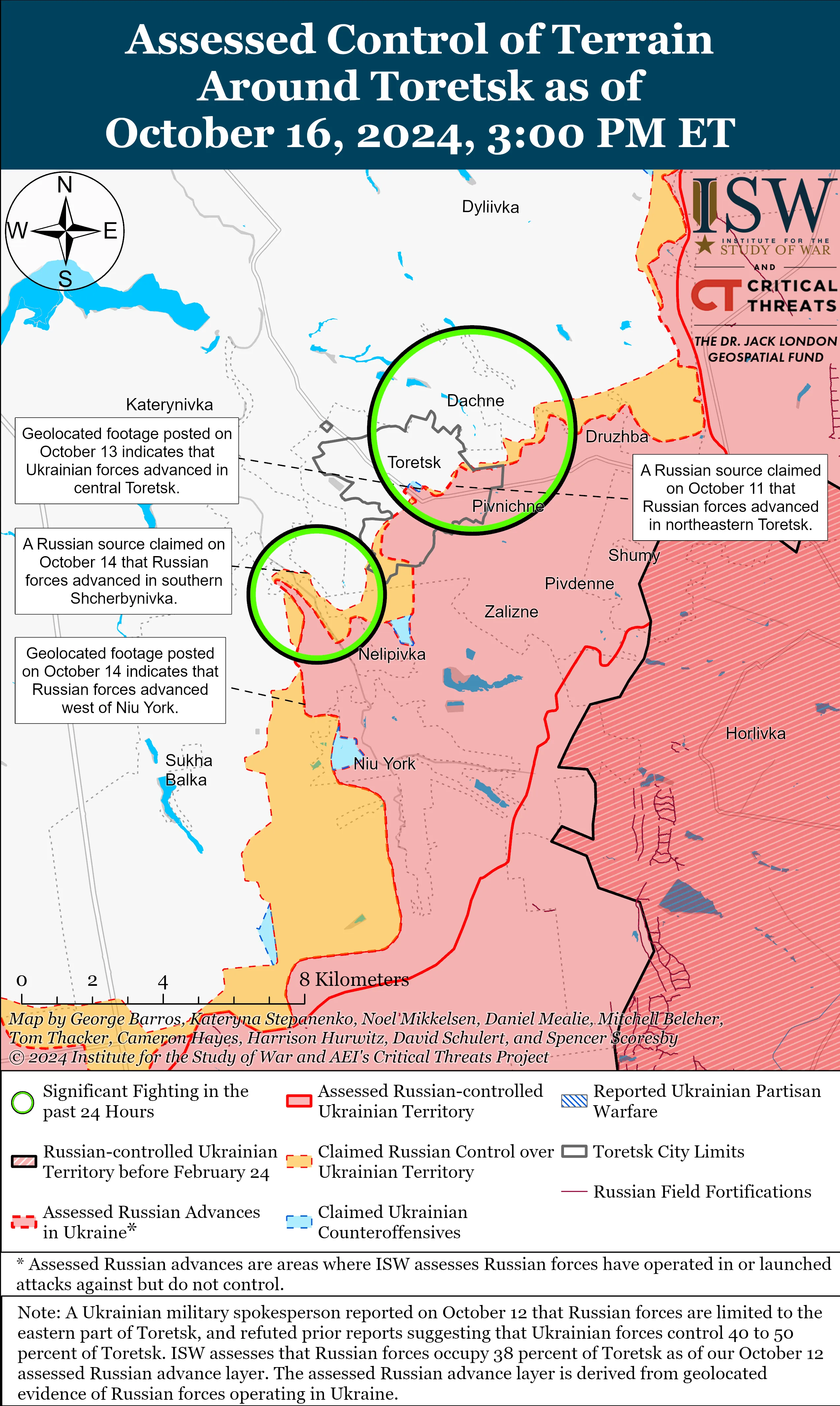 16 октября российский "военкор" заявил, что их армия якобы отразила рейд украинских войск на оккупированную Россией Кинбурнскую косу в ночь на 16 октября. Однако эксперты ISW не имеют этому доказательств.