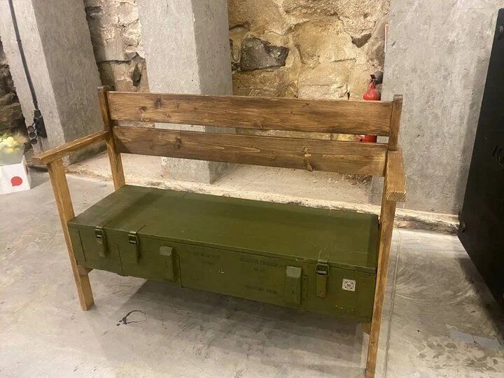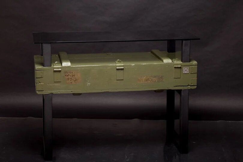 Мы сделали из ящика для боекомплектов бамбетль – кажется, такого в мире еще никто не делал. Он может и на улице стоять, и быть крутым предметом в интерьере. Также сделали очень классный стол. Это был один из наших первых изделий. Сверху он имеет закаленное стекло, а внутри можно держать документы,