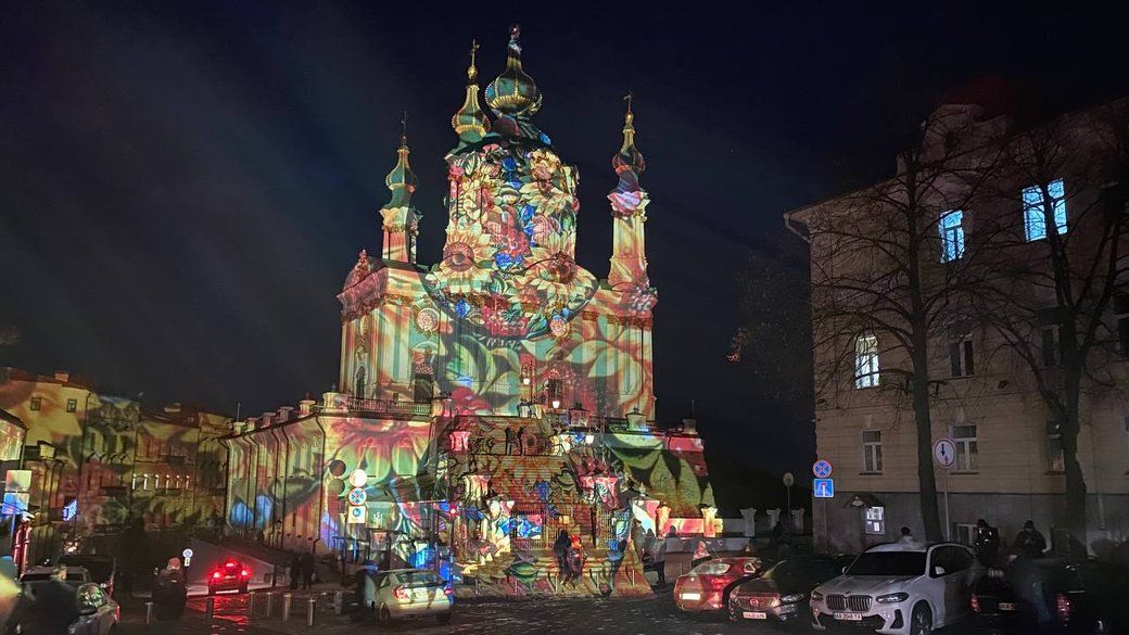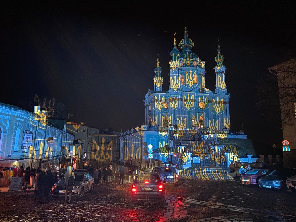 Однако заметим, что первые проекции с украинскими государственными символами, абстракциями на рождественскую тематику, вышиванками, подсолнухами киевляне могли заметить еще 23 декабря на: