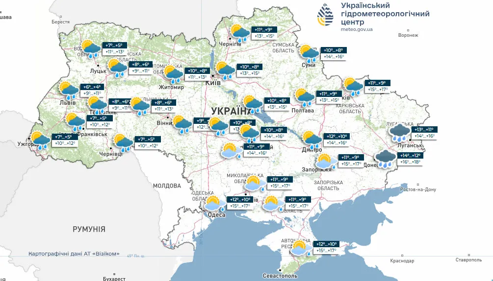 Укргидрометцентр сообщает об умеренных, а днем значительные, дожди, которые пройдут в восточных областях. В то же время на территории большинства южных областей существенных осадков не ожидают. Ночью и утром в западных и северных областях местами будет туман.