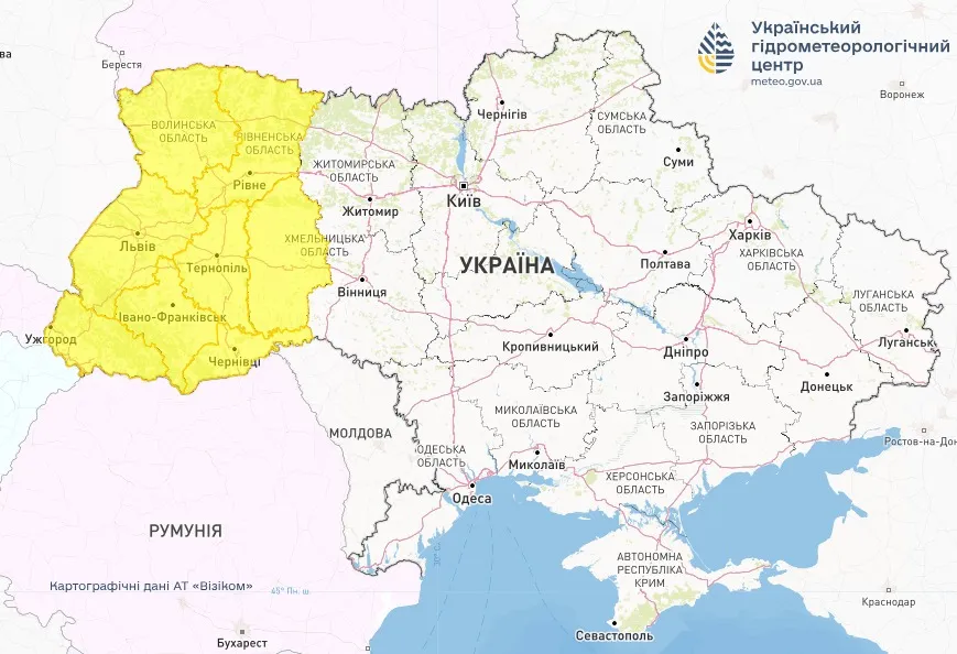 Предупреждение о заморозках / Карта Укргидрометцентра