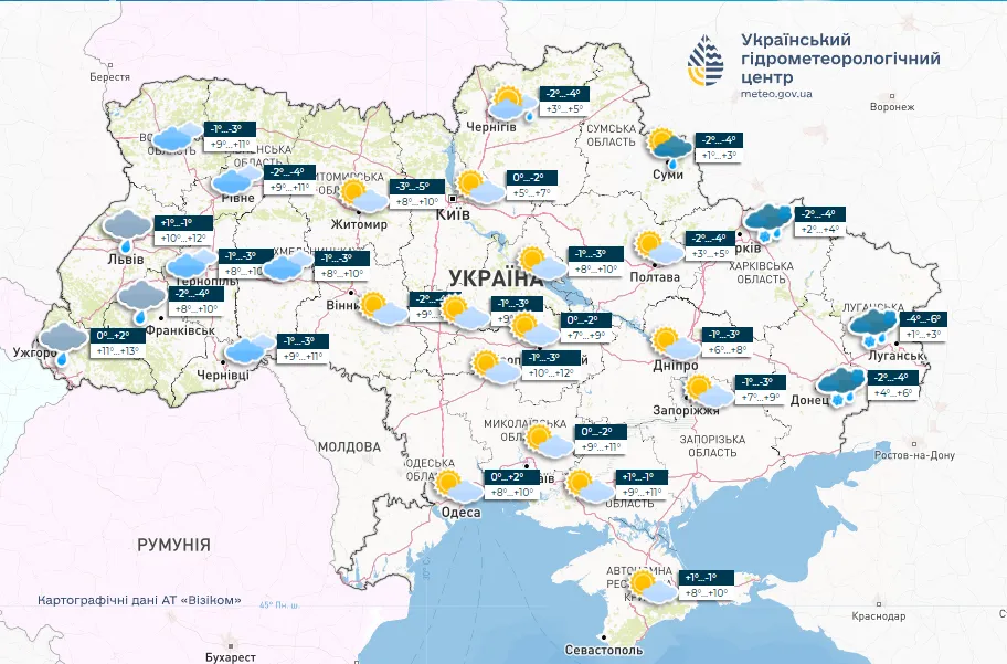 Прогноз погоды в Украине 10 марта / Карта Укргидрометцентра