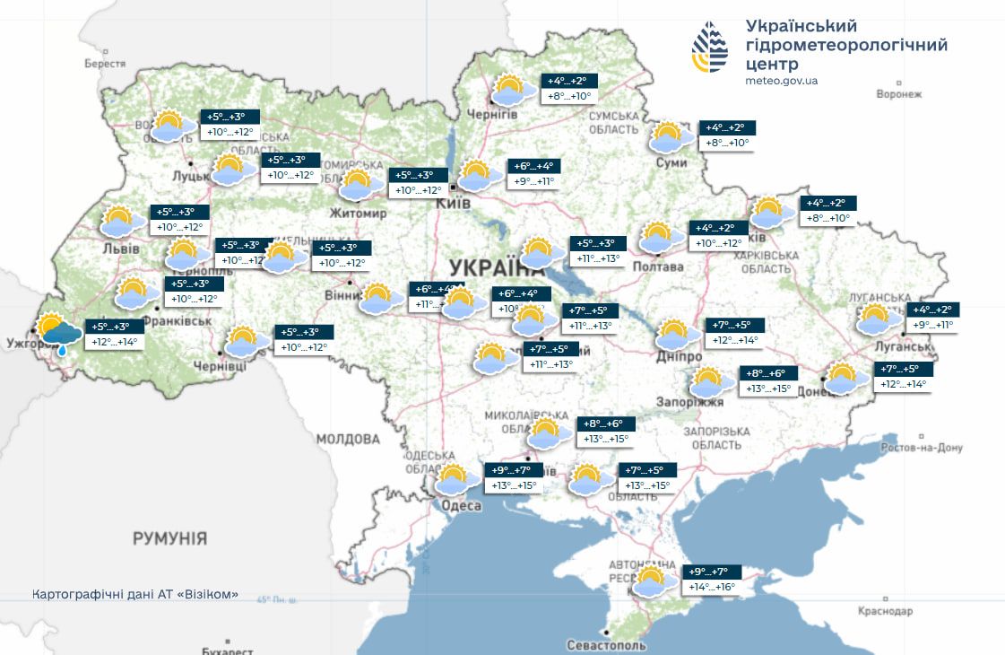 Какая температура будет в украинских городах?