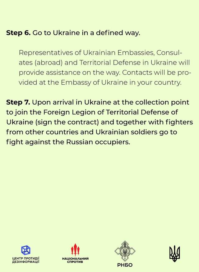 Работники Центра разработали для всех иностранцев, желающих защищать границы, алгоритм вступления в Иностранный легион территориальной обороны Украины.