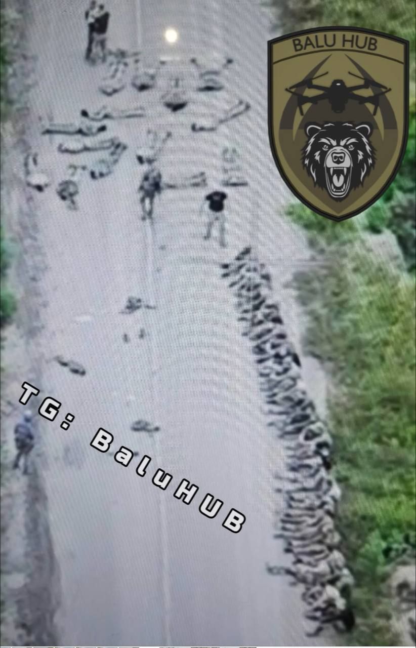 На опубликованных фото видно, как оккупанты лежат в ряд на одной из дорог Курской области. Речь идет о по меньшей мере 22 или, по данным некоторых телеграм-каналов, даже 40 российских военнослужащих.
