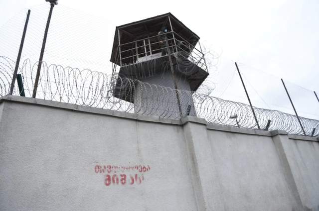 Вблизи тюрьмы 8 октября на акцию протеста собрались сотни сторонников третьего грузинского президента. Они пытались написать на асфальте и стенах заведения лозунг "Свободу Мише".
