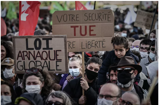 - Французы протестуют из-за того, что власть хочет запретить распространять "изображения, которые помогают идентификации полицейских."