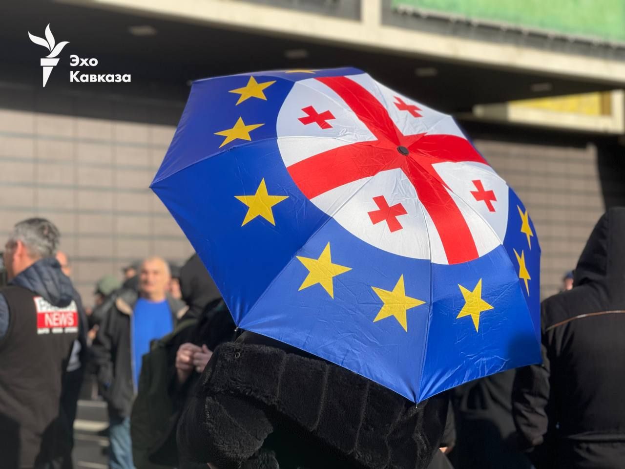 Митингующие прячутся за зонтиками / Фото "Эхо Кавказа"