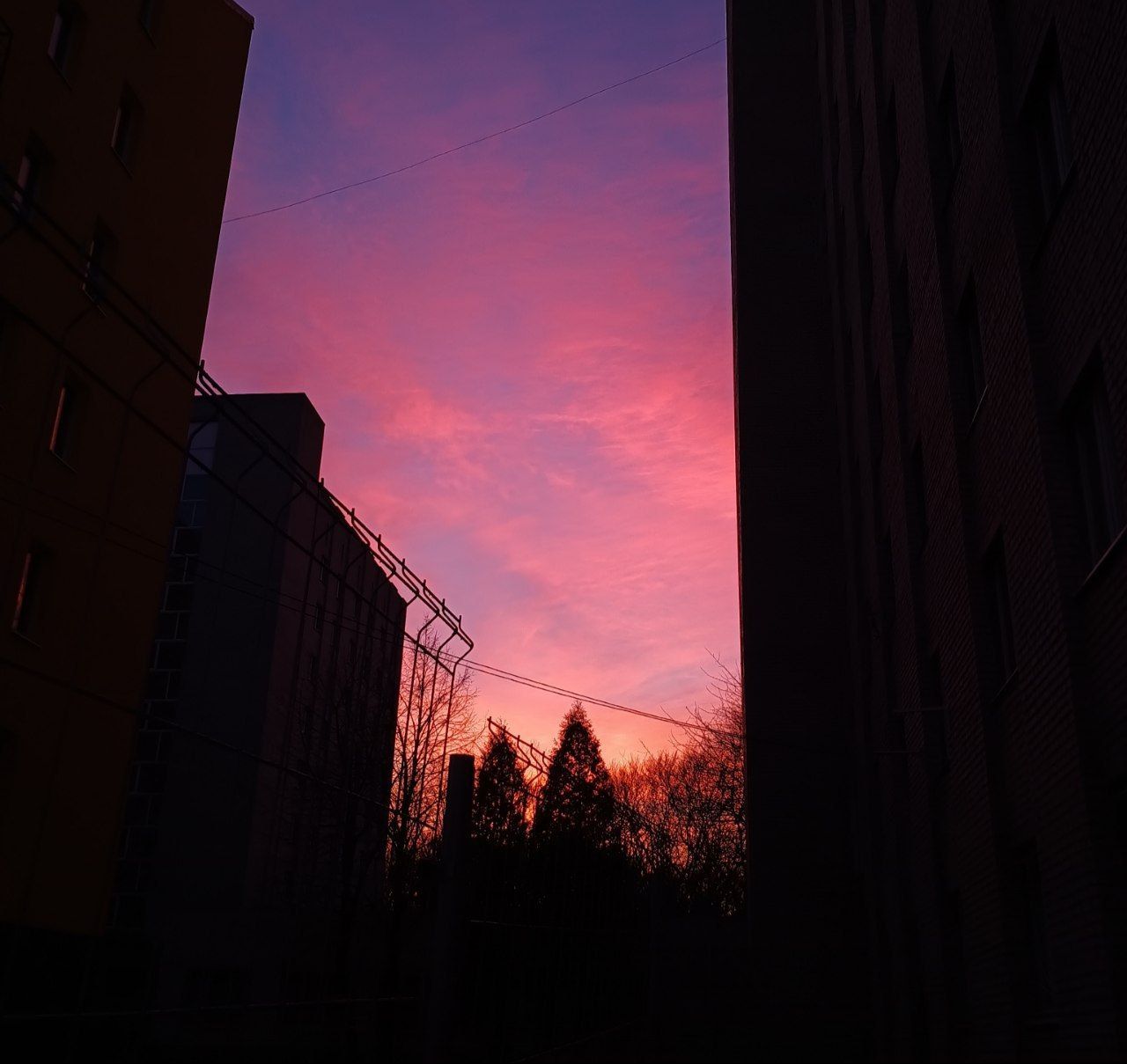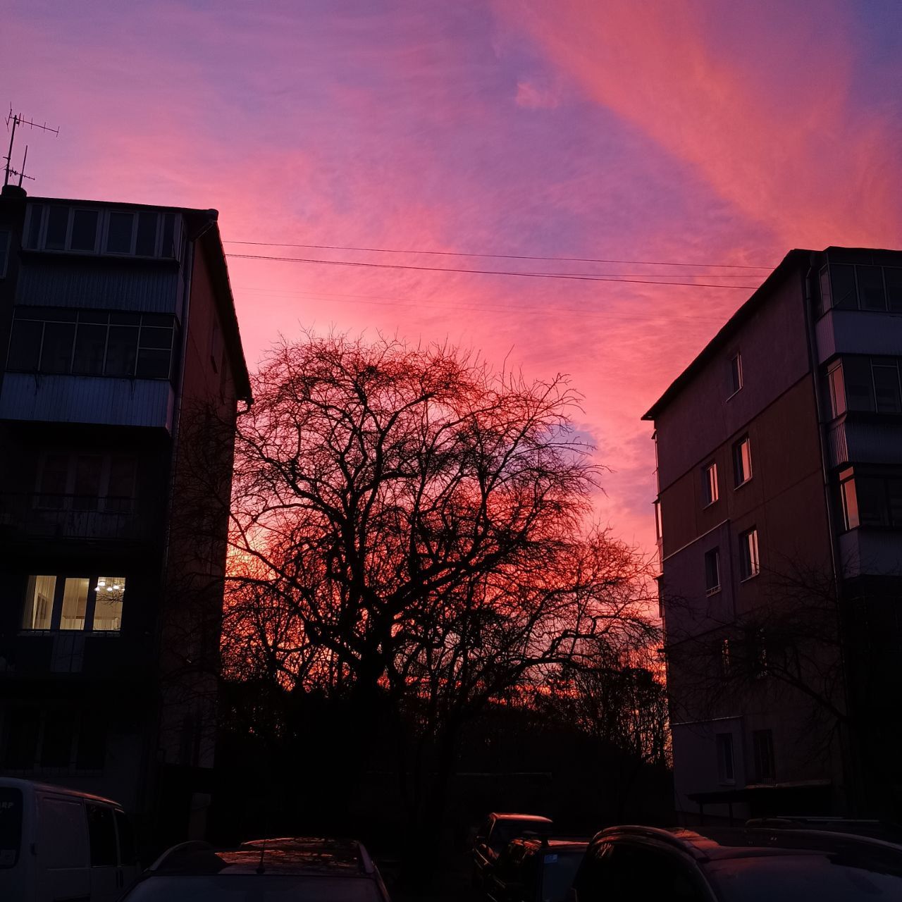 Пурпурный закат фиксировали во Львове, Киеве, Чернигове, Черкассах, Запорожье и других украинских городах.