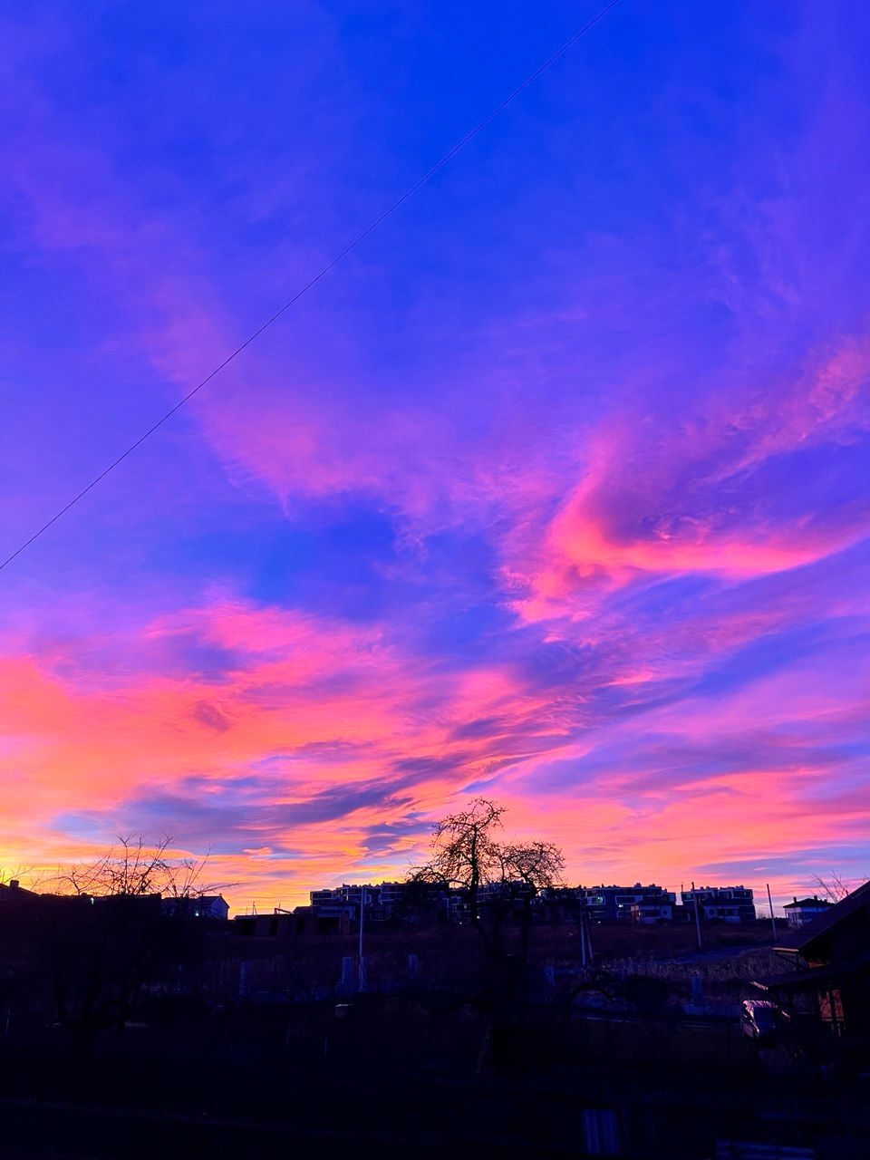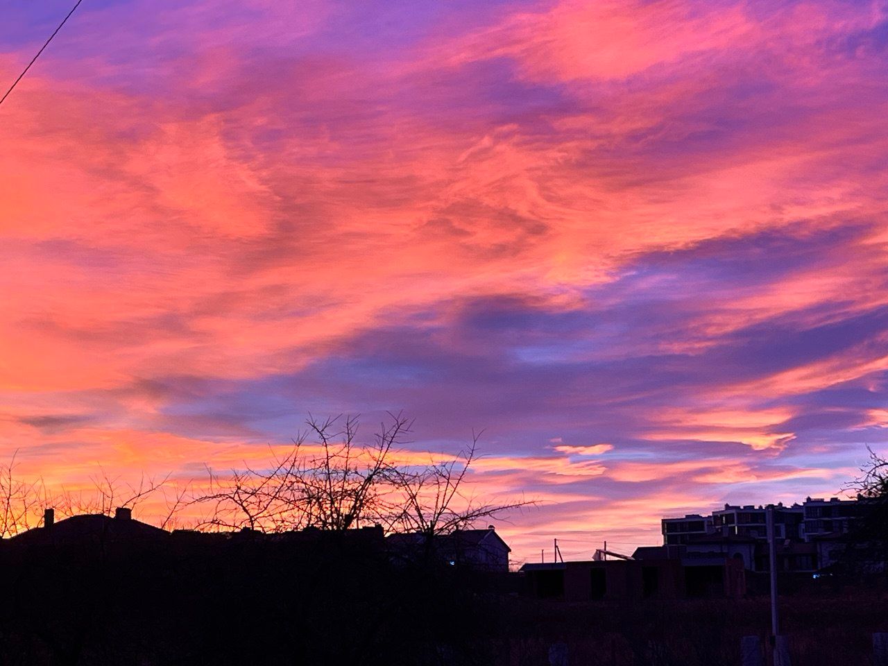 Что же, 1 января украинцы встретили свой первый закат в новом 2025 году. Конец световых суток встретил невероятными цветными красками. Небо приобрело фиолетово-оранжевый, а местами розоватый оттенок.
