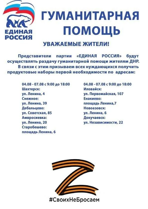 Объявление о раздаче гуманитарки, которое распространяли / Фото из российских сообществ в соцсетях