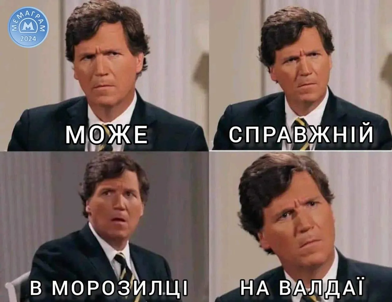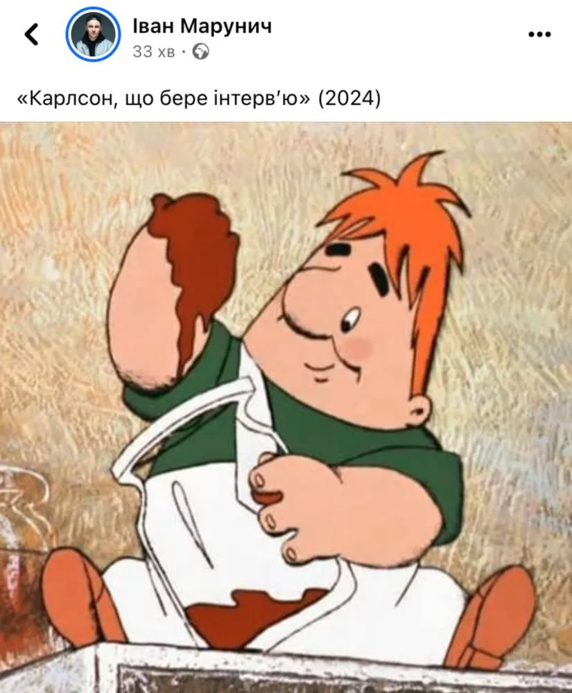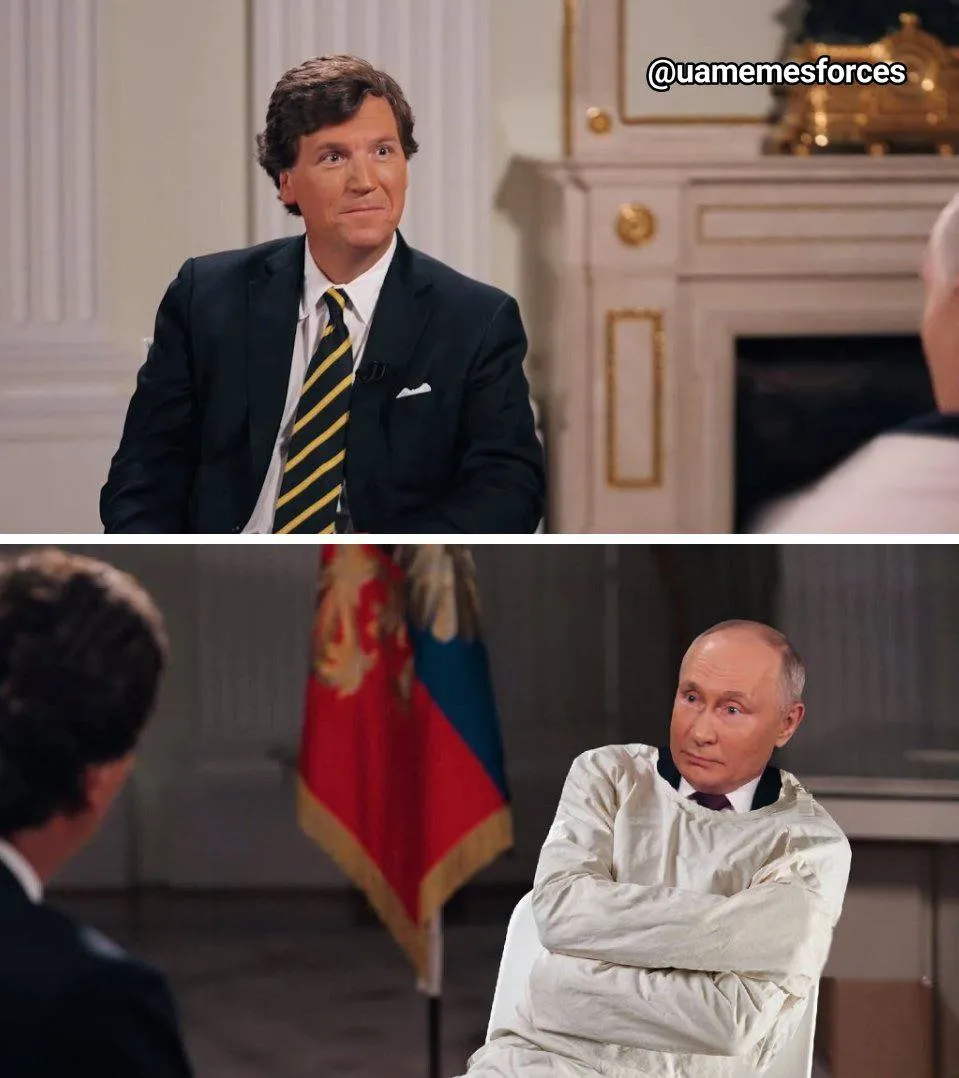 Немножко наделали мемов и с самого Карлсона. Сначала журналиста, а потом мультипликационного героя, которого зовут так же. Начнем с настоящего. Эмоции пропагандистского журналиста сложно скрыть. Они демонстрируют, что он также потрясен тем, что слышит. И, не исключаем, что действительно подумал, настоящий ли Владимир Путин перед ним, или его еще не холодная версия.