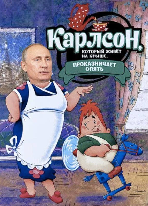 А вот и сам Карлсон. Признаемся, мы в редакции шутили, что Владимир Путин идеально воплотился бы в роль Фрекен Бок. Это и подтвердили пользователи сети, наплодив мемов с этими двумя персонажами.