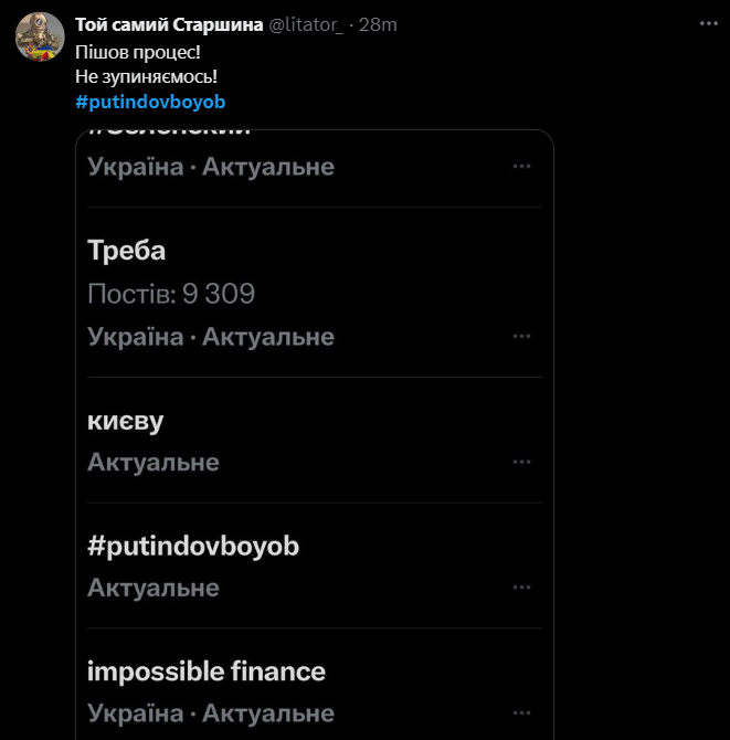 Пользователи соцсети Х на фоне нецензурной характеристики российского президента создали новый хештег, сообщает 24 Канал.