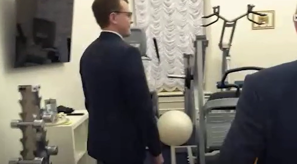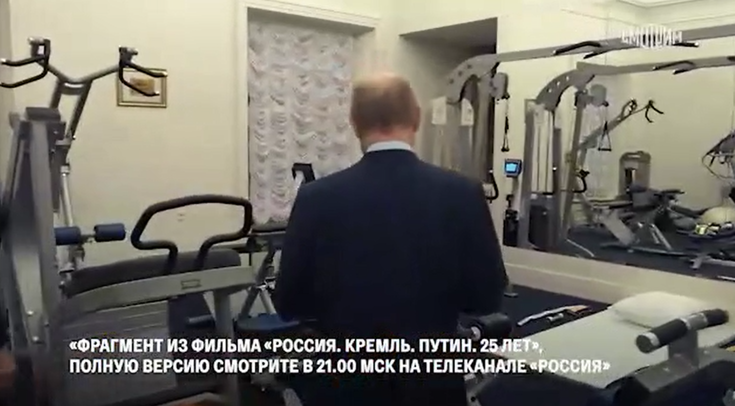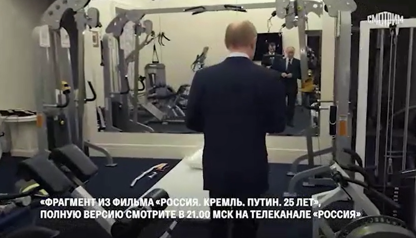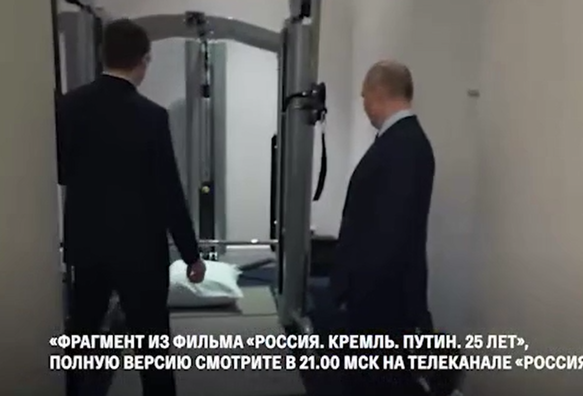 Также диктатор показал свой тренажерный зал. По его словам, он наведывается в него каждое утро и занимается спортом по полтора часа. Кроме того, почти ежедневно, говорит Путин, он ходит в бассейн. Глава Кремля, кстати, объяснил происхождение загадочного шрама у себя на лбу. Говорит, что случайно ударил себя по лбу во время занятий спортом.
