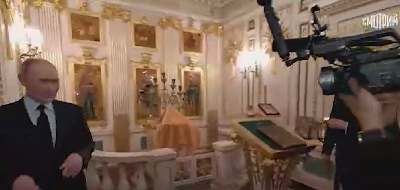В Кремле Путин имеет собственную небольшую "домашнюю" церковь. Он цинично заявил, что впервые здесь молился на коленях во время теракта на Дубровке в 2002 году (не исключено, что его могла устроить российская спецслужба ФСБ по заказу диктатора).