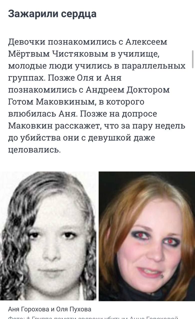 На следующий день в Оголобяк снова в гости пришли знакомые – 16-летний Андрей Сорокин и 16-летняя Варвара Кузьмина. Они стали жертвами ритуального убийства.