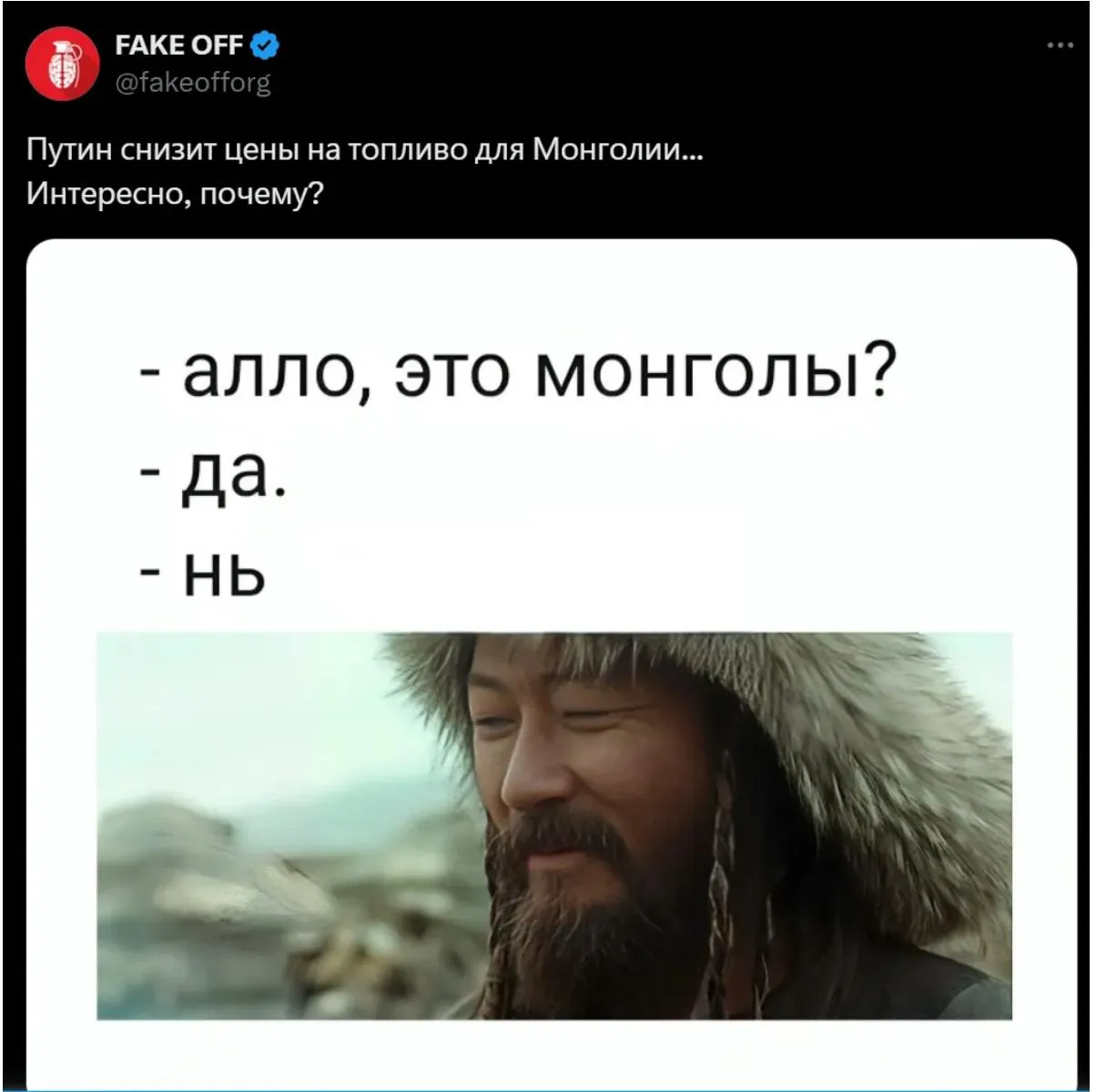 Ранее в интервью монгольским СМИ диктатор страны-агрессора сообщил, что Россия и Монголия согласовывают поставки топлива и горюче-смазочных материалов по льготной стоимости. Кроме этого, Владимир Путин уточнил, что страны достигли определенного успеха в разработке проекта временного соглашения о свободной торговле между ЕАЭС и Монголией.