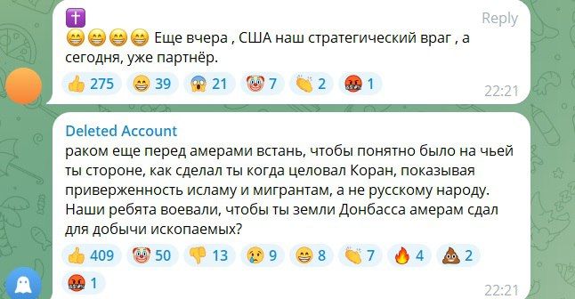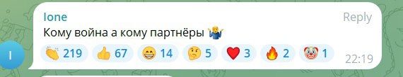 После этого среди россиян поднялась волна возмущения в телеграм-каналах. Говорят, "кому война, а кому партнеры".