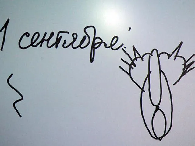 Глава России зашел в несколько классов, где лично поздравил школьников. В кабинете информатики даже порисовал на электронной доске.