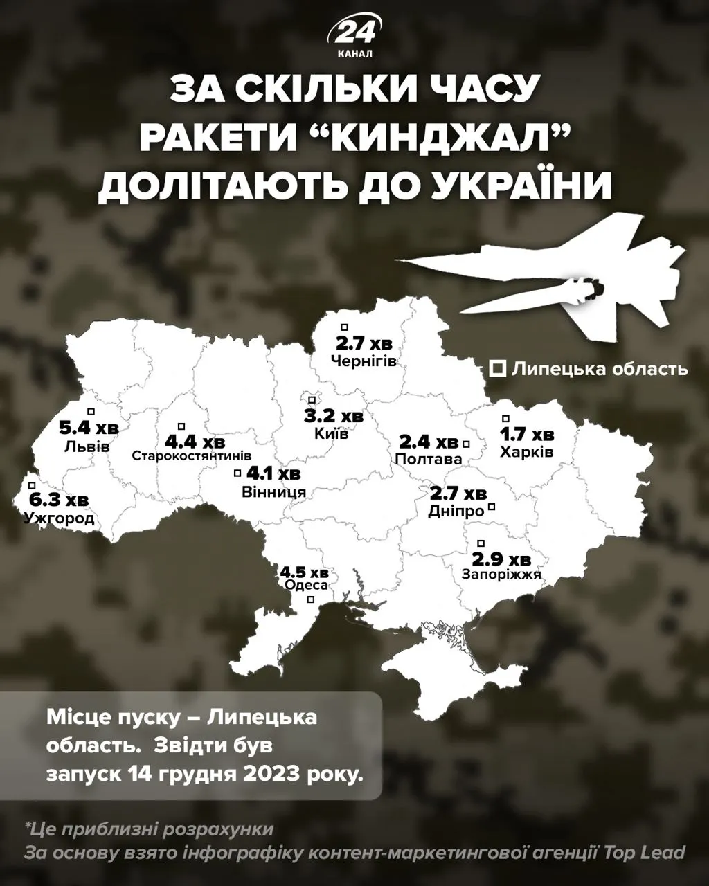 За сколько минут "Кинжал" может долететь до разных городов Украины / Инфографика 24 Канала