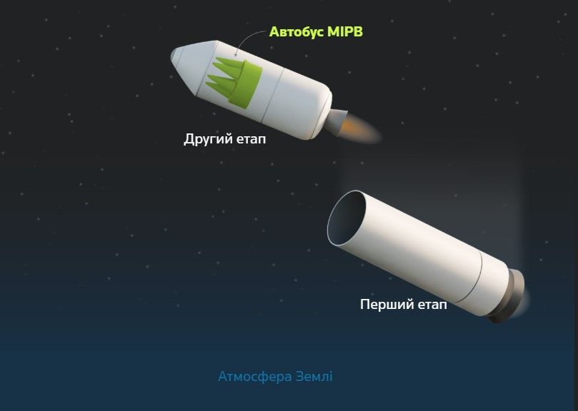 - MIRV движется через пространство к целевой зоне. Именно на этом этапе ракета наиболее уязвима для перехвата на курсе.